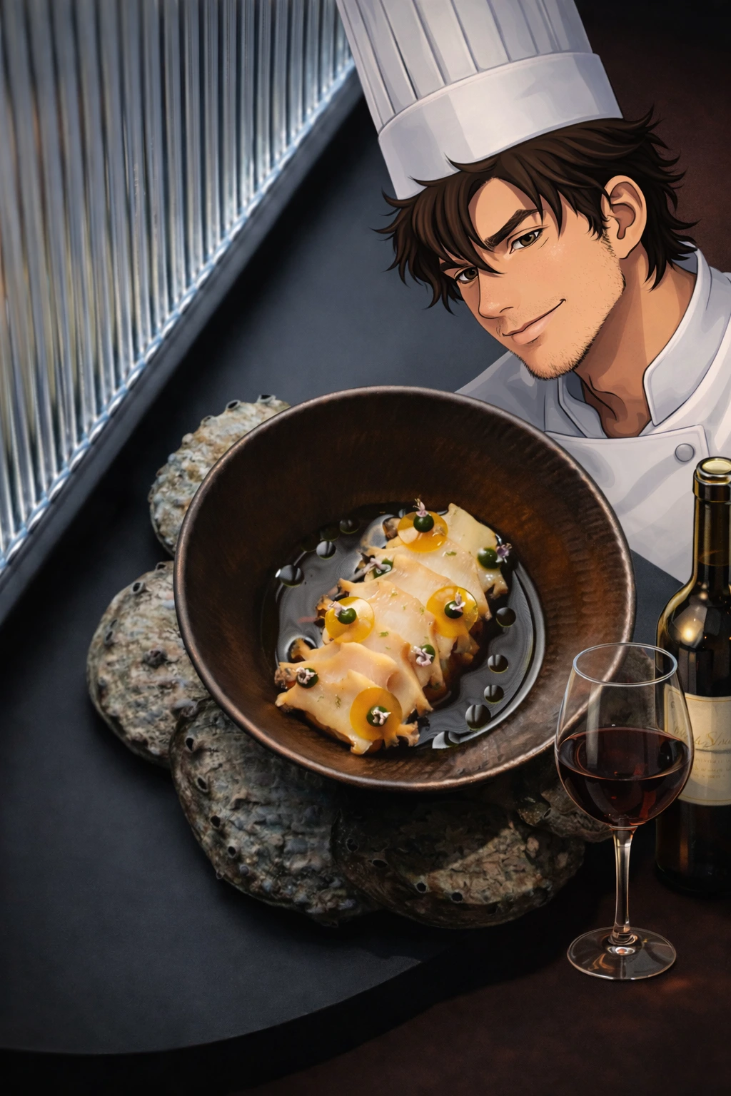 “지수야, 잘 봐. 전복의 근육은 갑작스러운 온도 변화에 수축하며 식감이 극대화되지. 하지만 핵심은 소스야. 전복 내장을 화이트 와인과 함께 갈아서 80도에서 은근하게 졸이는 거야. 이걸 ‘에멀전’이라고 해. 지방과 수분이 하나로 섞여서 혀에 닿는 순간 비단처럼 퍼지게 만드는 과학이지. 50년 세월도 결국 서로 다른 두 사람이 만나서 이렇게 부드럽게 섞이는 과정 아니겠냐?”