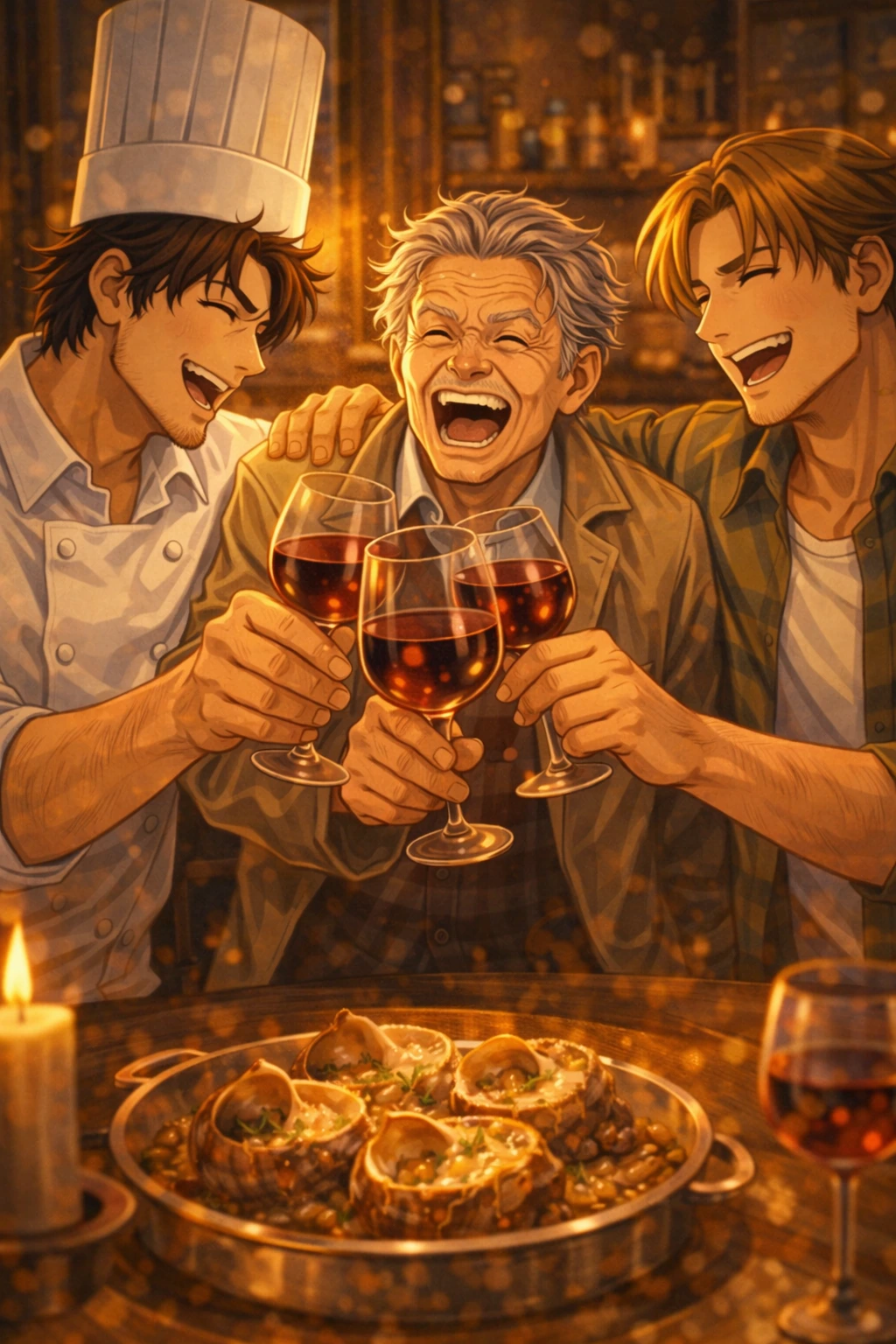 나는 설거지통 앞에 서서 웃음을 참지 못했다. 할아버지의 요란한 습격으로 시작된 하루는 결국 장폴 아저씨의 ‘K-분자 요리’와 태풍 사장의 ‘넉살’에 무너졌다. 지랄 맞은 세 남자와 우리 할아버지. 절대 어울릴 것 같지 않던 이들이 촛불 성 아래에서 소라 소스처럼 부드럽게 섞인 날이었다.
