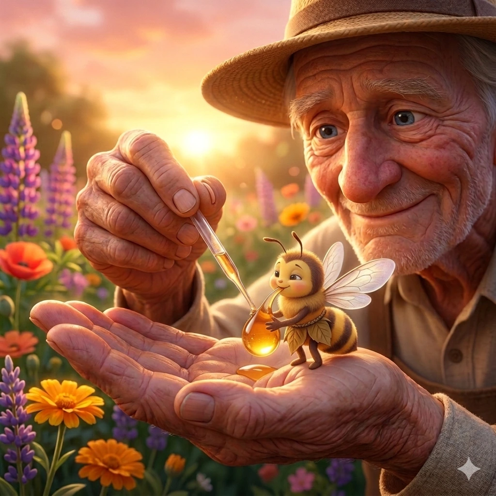 조아는 흐릿해지는 정신을 다잡으며 마지막 날갯짓을 했다. 꿀주머니에 남은 마지막 당분까지 모두 불태운 조아의 몸이 서서히 지면을 향해 기울어지기 시작했다. 그때, 어디선가 지금껏 맡아본 적 없는 강렬하고 풍성한 꽃향기가 조아의 더듬이를 때렸다. 그리고 그 너머로, 조아는 보았다. 수천 가지 색깔의 꽃들이 수놓아진 신비로운 정원과 그 너머에서 자신을 기다리는 듯한 '거대한 존재'의 형체를.
