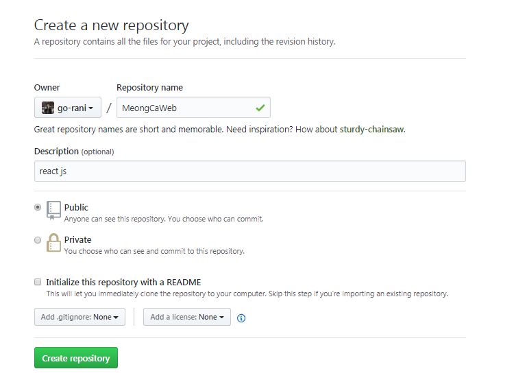 우선 Github에 가 회원가입을 하고, 저장소를 생성해보자. (레파지토리 생성)
