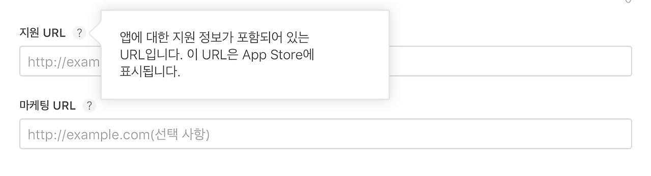 위 링크를 iTunes Connect에서 확인하면 지원 URL, 마케팅 URL로 노출되는데 그중 지원 URL은 필수 값이기 때문에 웹페이지가 없다면 보통 페이스북 페이지나 인스타그램, 블로그 주소를 사용한다.