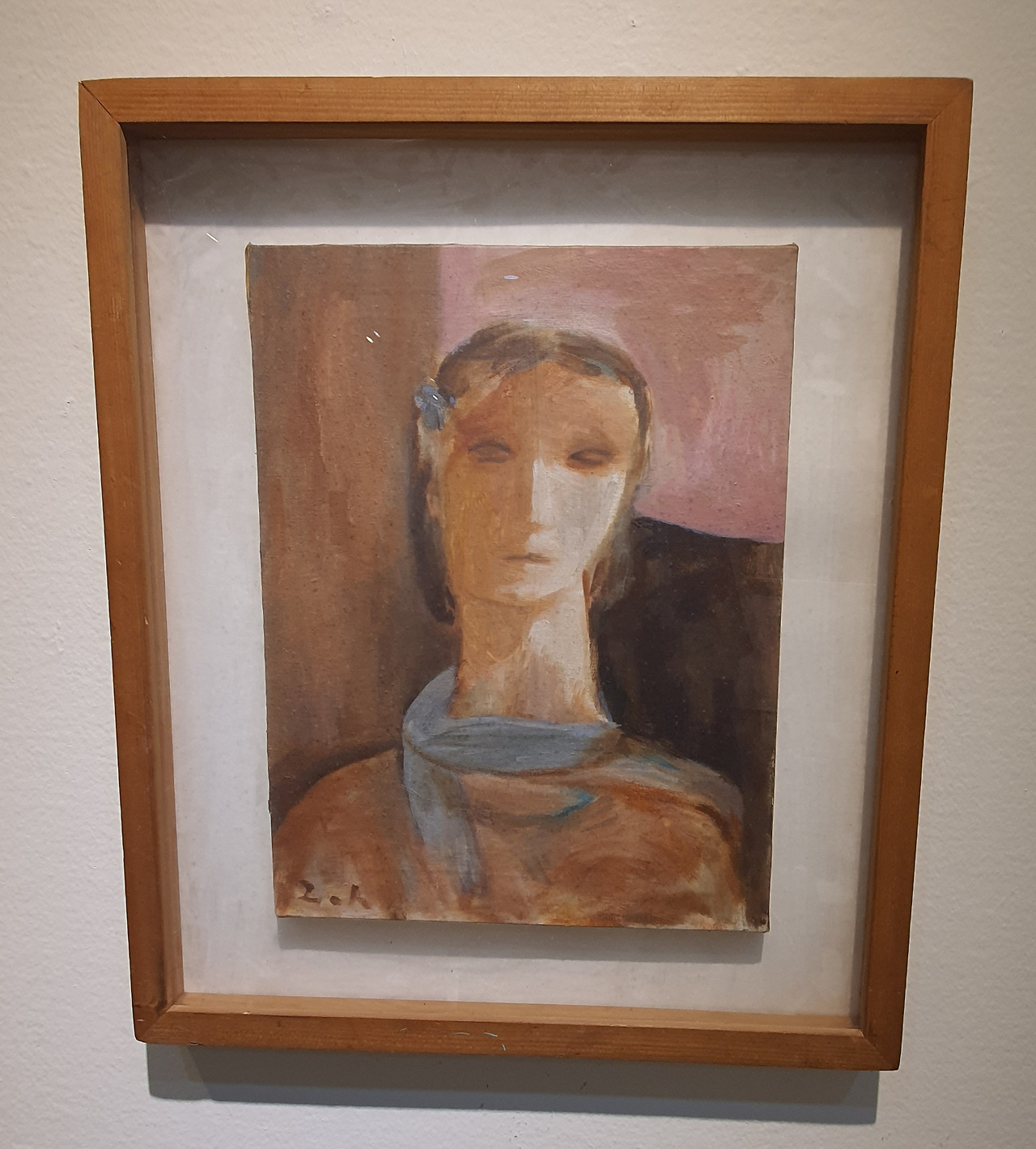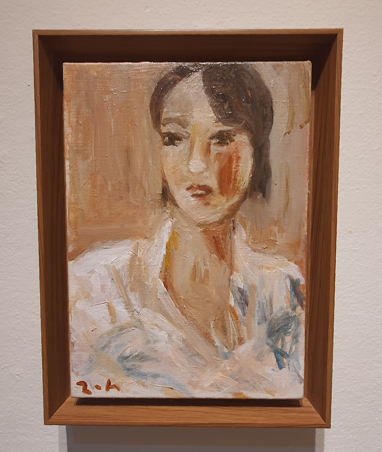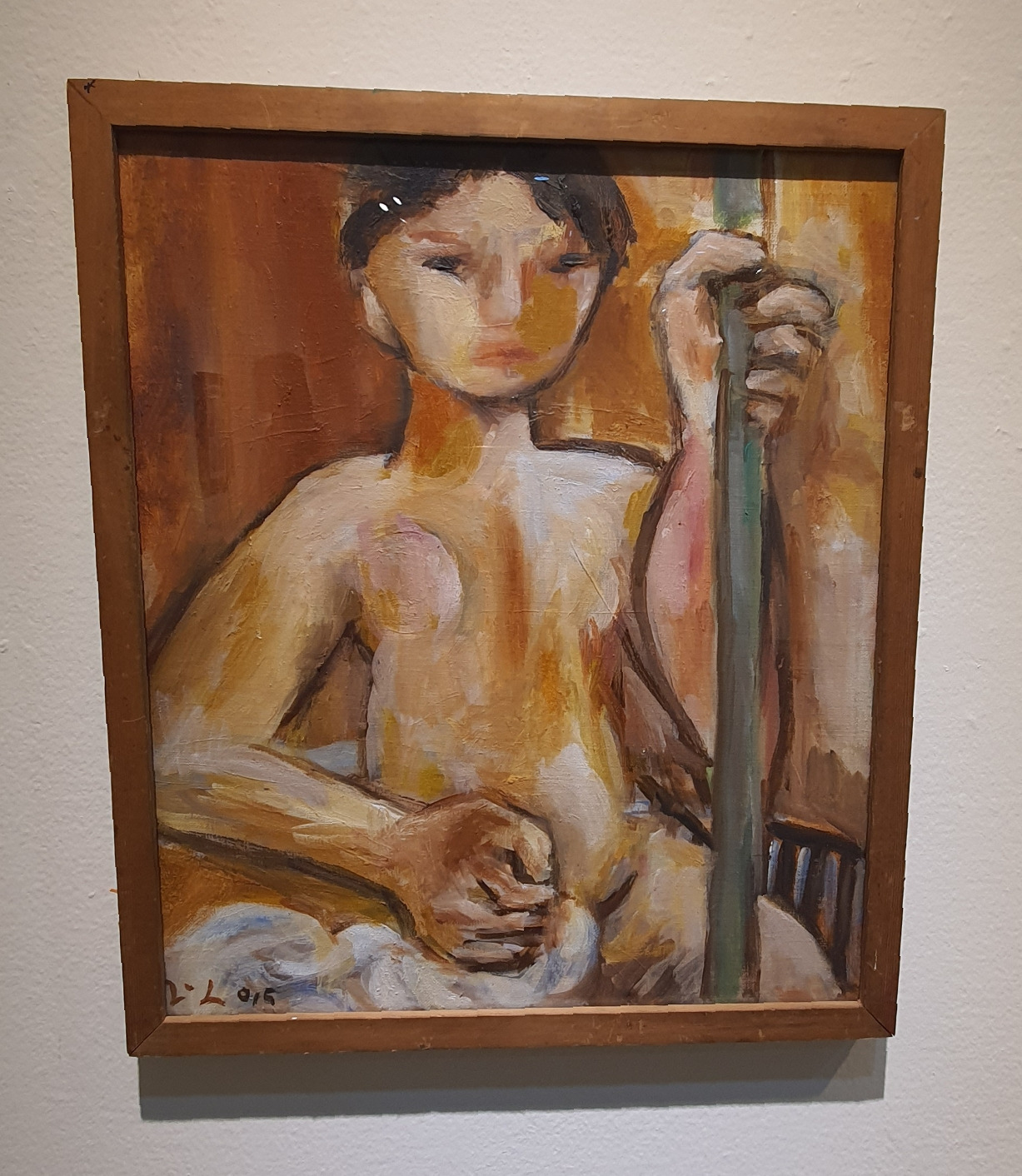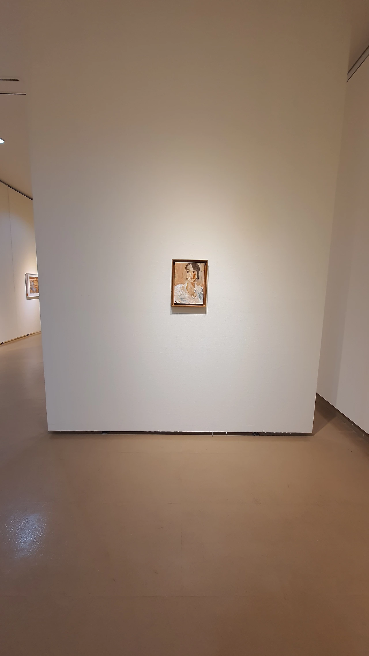 앞의 작품과 나란히 전시되어 있었는데, 대를 잡은 소녀가 커서 푸른 목도리를 한 여인이 된 게 아닐까 생각할 만큼 두 인물은 얼굴의 모습과 이미지가 매우 닮아있다.앞서 언급한푸른 색의 이미지를 생각했을 때, 소녀에서 여인으로의 변화를 충분히 짐작해볼 수 있다.