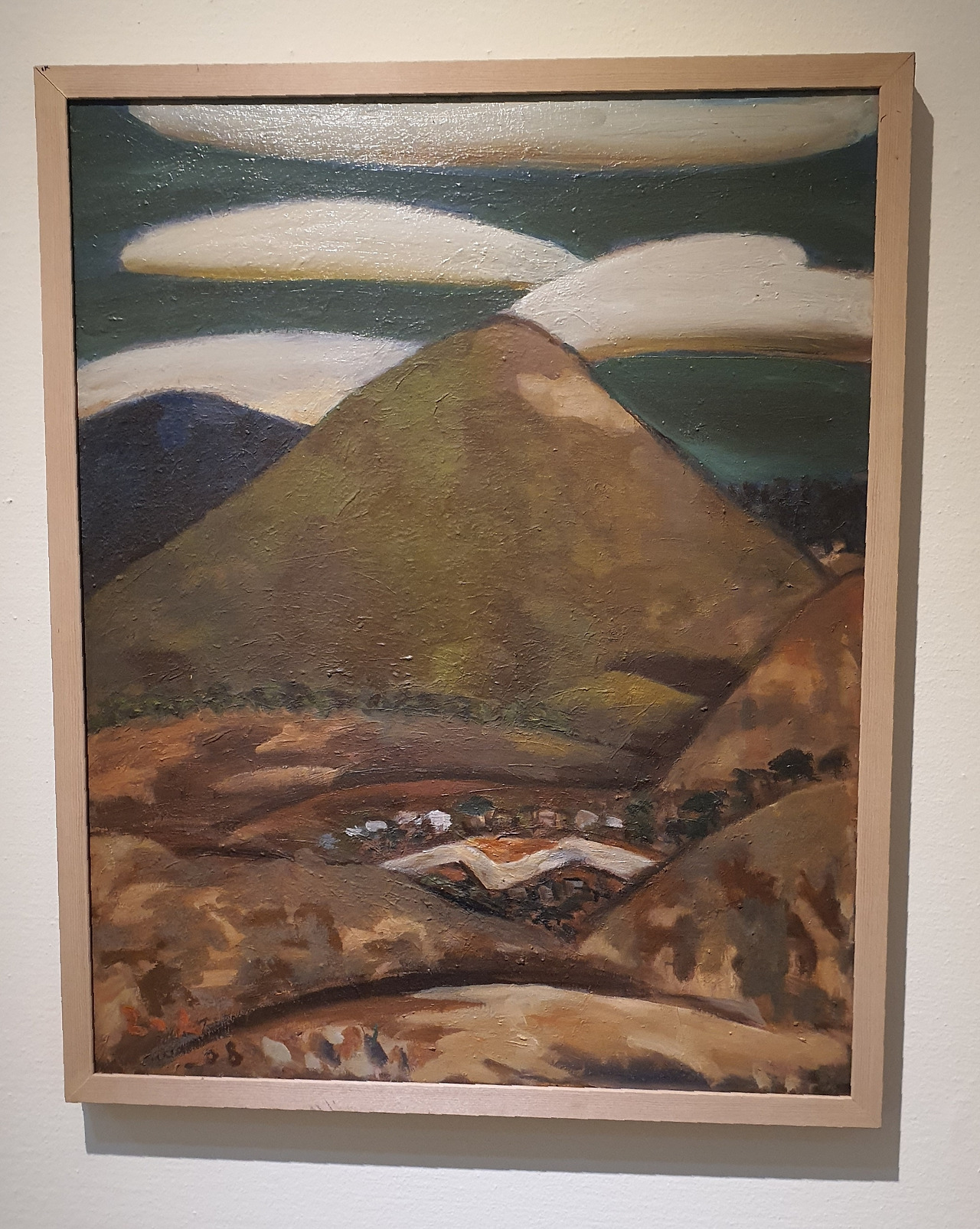 작가를 압도한 것은 구름이다. 흩어지지 않고 하나로 수렴되어 있는 구름의 형태, 저 자리에 영원히 존재할 것 같은 착각을 일으키게 하는, 오히려 산이 나무가 인가가 잠시 머물다 떠날 것 같은 착각을 일으키게 하는 작품이다.