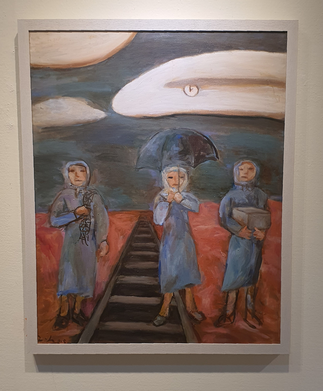 인물들 뒤로 깔린 철로는 원근이 분명한 지향을 보인다.