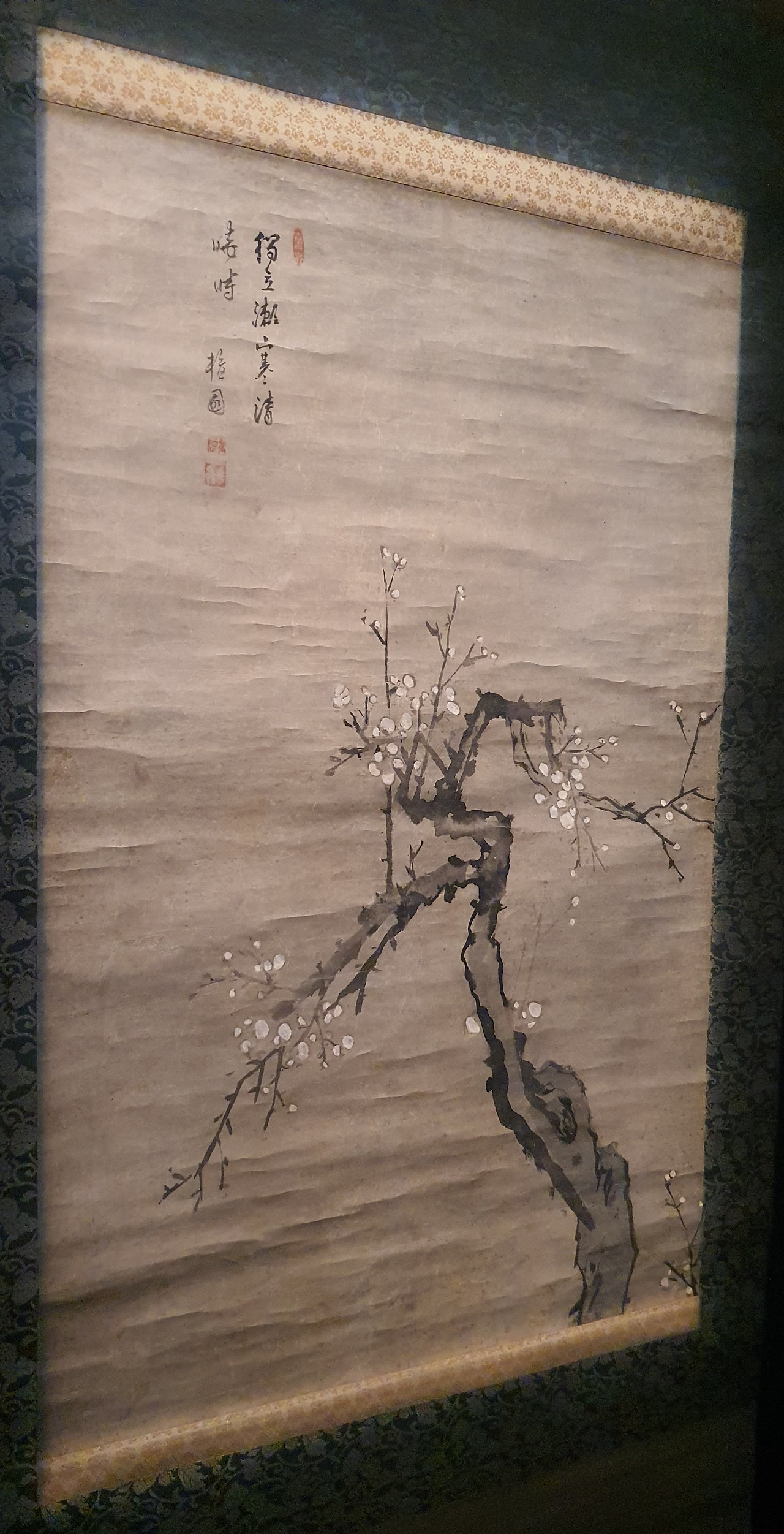 중앙부에 도자들이 자리 잡고 서 있고, 벽면을 둘러 회화 작품들과 글씨들이 있는 제1전시실은 말할 것도 없이 <백매>가 전시된 제2 전시실에서는 그 감정이 훅 더 올라왔다. 부러움에서 더 나가 시기나 질시쯤 되는 곳이었다. <백매> 작품이 좋기는 하겠지만, 이렇게 전시공간을 마련해서 조명으로 신비스러운 분위기를 준 다면 이곳에 무엇이 걸려 있다고 하더라도 대단한 작품처럼 보이지 않겠냐며 조금은 삐딱하고 조금은 못난 마음이 올라왔다. 작품에 대하여 아는 바가 없을 때였다.