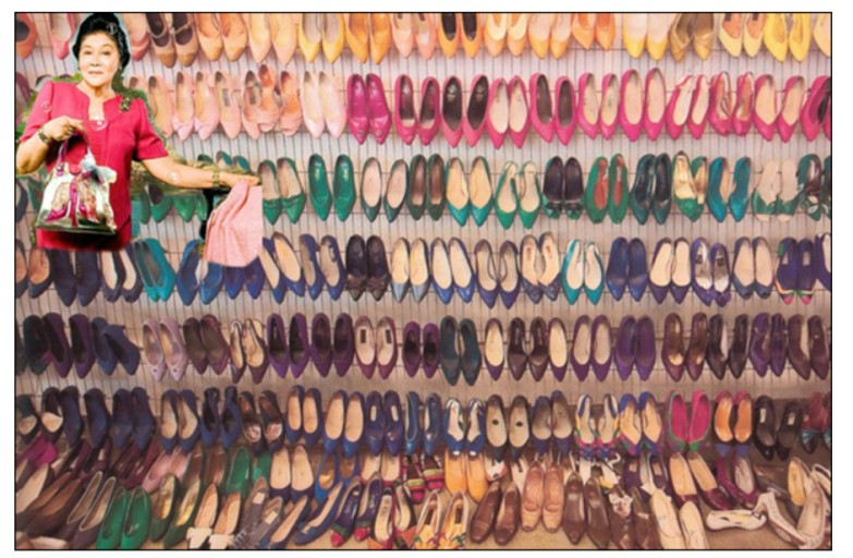 이멜다(Imelda)가 야반도주하듯 미국 하와이로 망명한 후 남겨진 3천여 켤레의 구두와 럭셔리 가방 액세서리 사진 출처: 구글 이미지