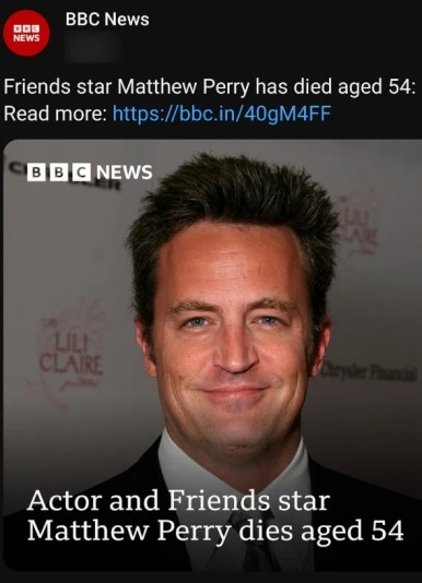 ※Matthew Perry PHILLIP FARAONE/GETTY IMAGES FOR GQ 출처 BBC