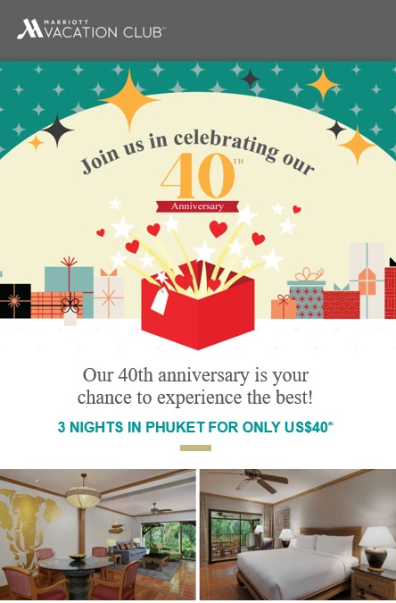 JW 매리옷 푸켓 Vacation Club에서 그들의 빌라(Villa) 분양을 목적으로 설명회 Presentation 1시간 조건으로 3박 4일 빌라 체험(대략 150$? 가격은 직접 문의) 행사가 있습니다. 이 프로그램 참석여부가 저와는 관계가 없지만 Marriot Vacation Club은 제가 2007년도부터 가입해서 잘 아는 프로그램이고 아래 프로그램이 나름 괜찮은 프로그램이라 생각되어 관심 있으신 분들은 직접 연락할 수 있도록 제가 소개드리니 평소 푸켓 및 동남아 가족 여행 등 관심이 있으신 분은 잘 활용하시면 좋을 것 같습니다.