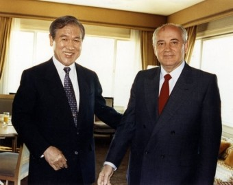 1990년 첫 한 소 정상회담 왼쪽 노태우 당시 대통령 오른쪽: 미하일 고르바 초프 소련 서기장 출처: 한겨레 신문: