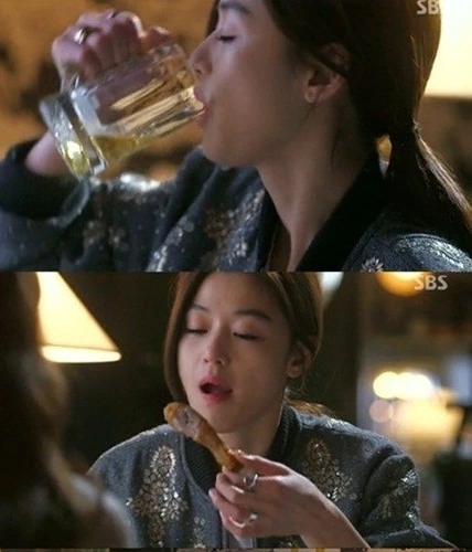 치킨에 시원한 생맥주 출처 : 별에서 온 그대 SBS 방송 화면 캡처