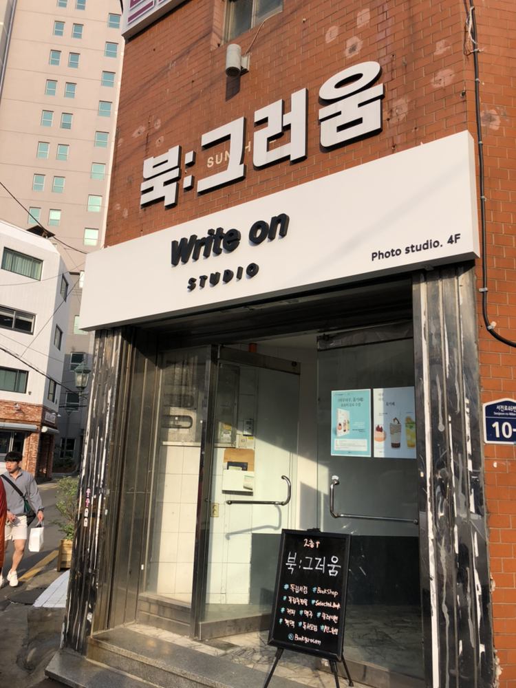 생각보다 북 그러 움의 서점 입구는 낡고 허름했다. 북 그러 움을 소리 내서 읽으면 부끄러움이 되는 서점은 무엇을 부끄러워하는 것인가. 무엇보다 붉은 벽돌 건물의 하얀색 간판이 넛 86년생인 내 감성으로는 이해할 수 없었으나 오히려 반전 매력을 기대하며 서점에 입성했다.