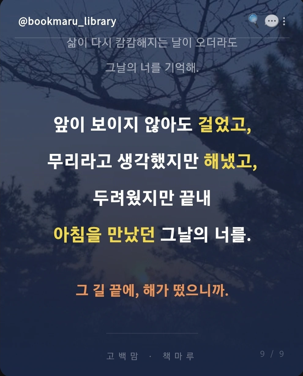 뒤돌아보면 어둠은 이미 지나가 있다는 것을.