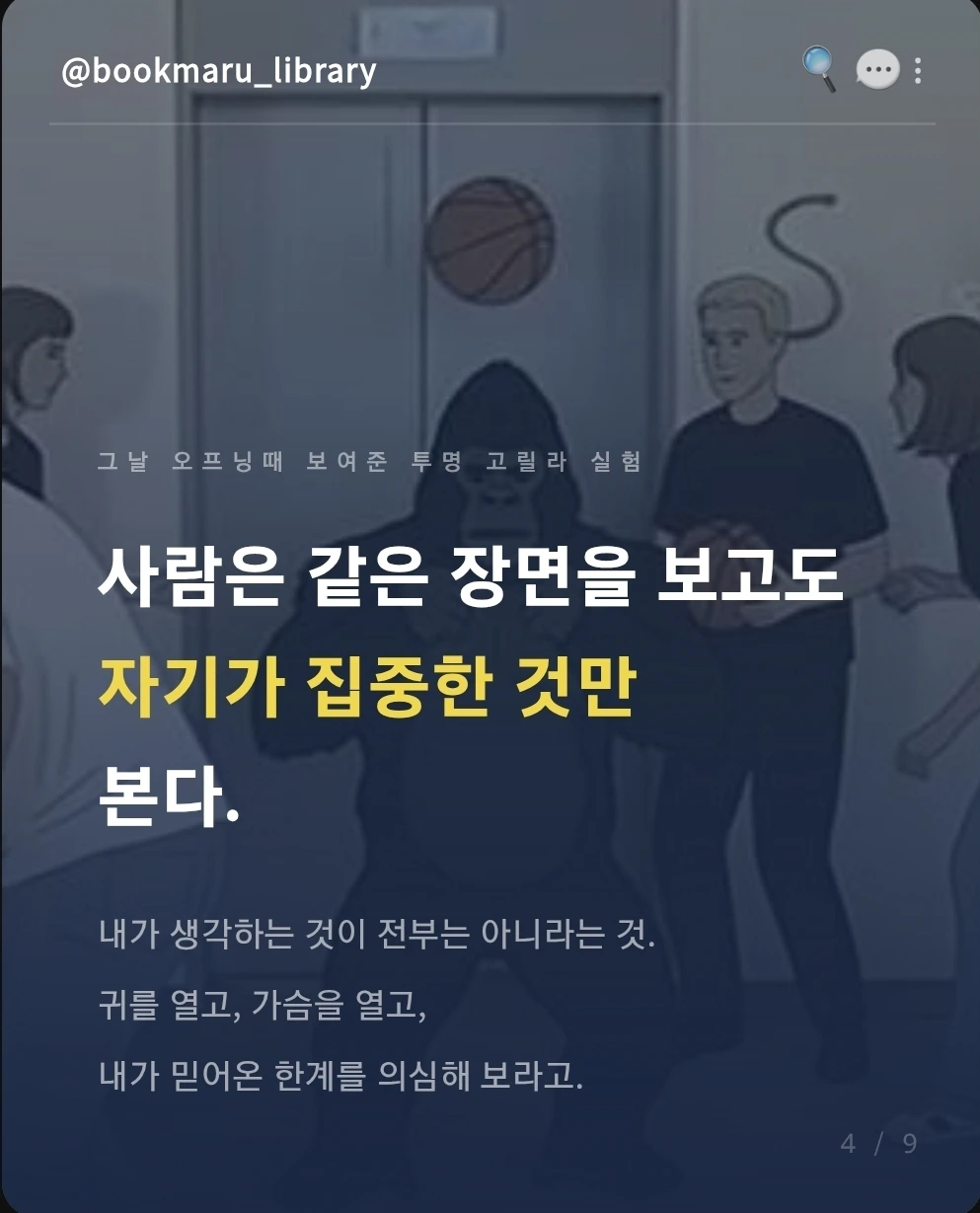 그날 오프닝으로 함께 본 것은 이른바 '투명 고릴라 실험'이었다.