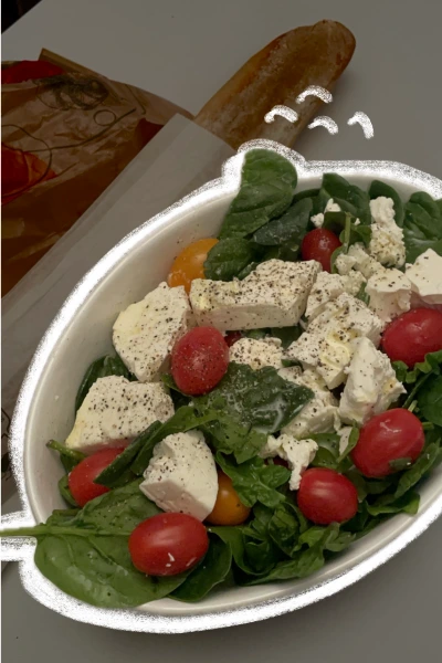 바질 대신 시금치를 넣어서 페타치즈파스타를 만들었다.