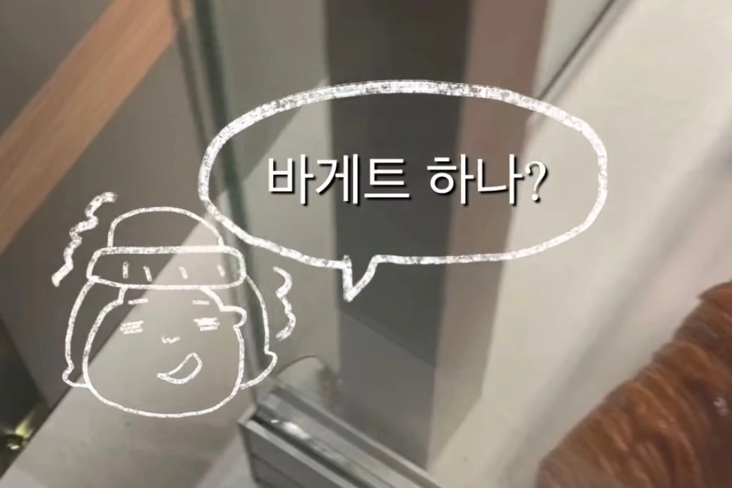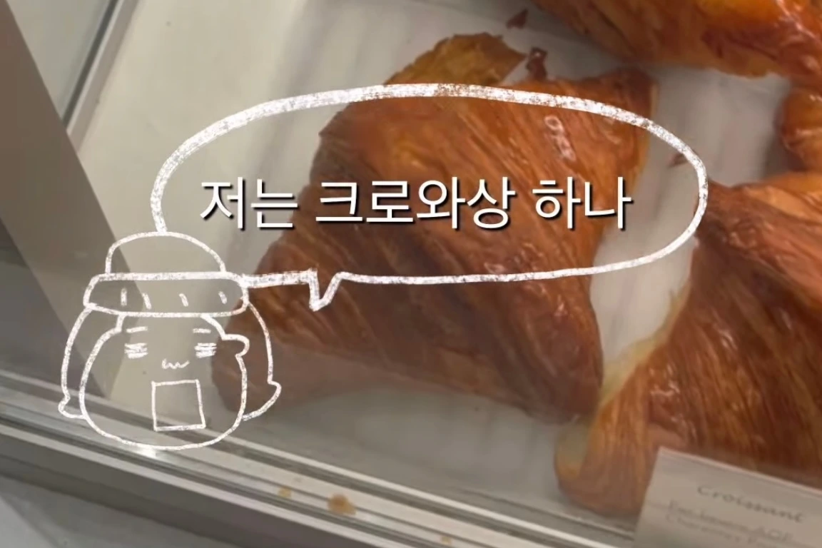 "저는.. 크로와상 하나와 바게트 하나? 원합니다. 부탁드려요."