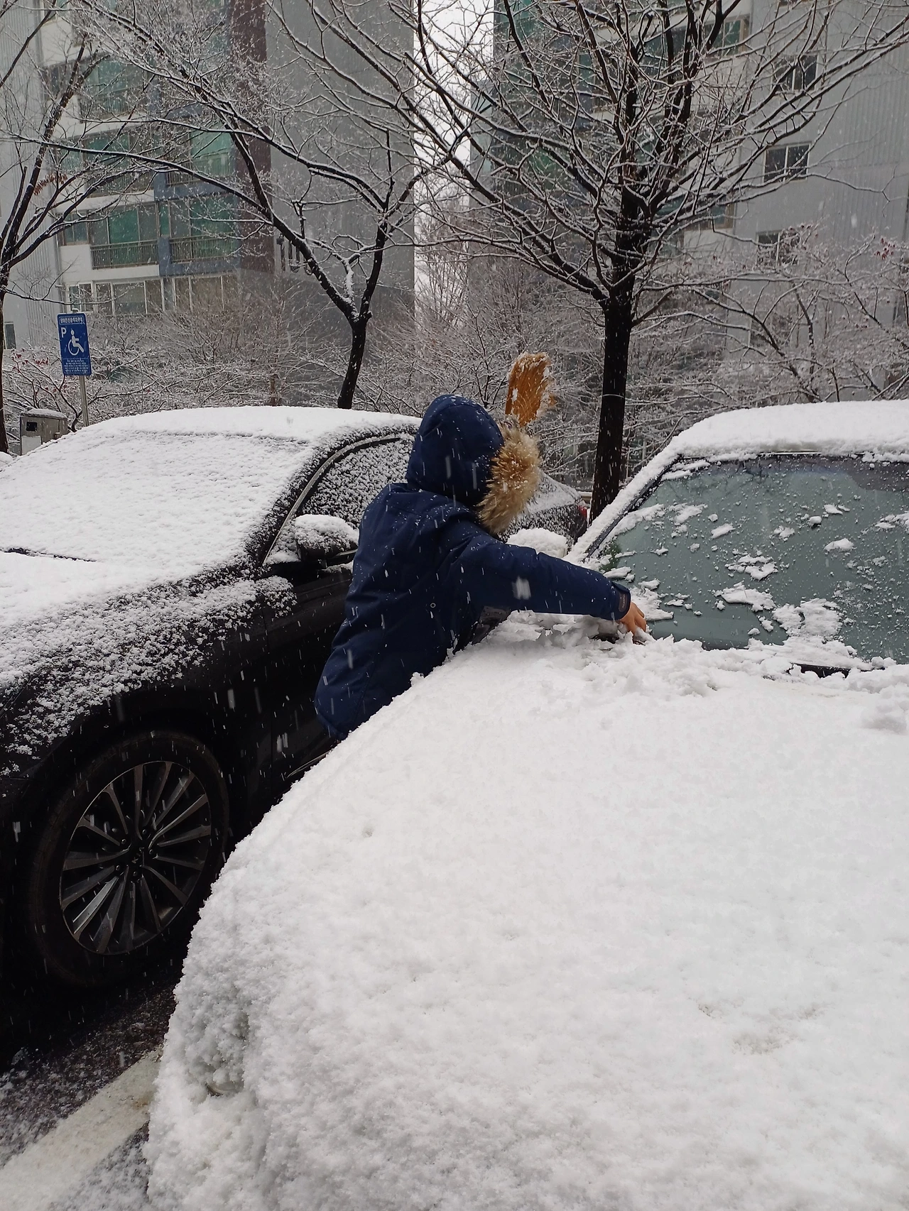 한국에 도착하기 전 친구가 아이들과 베짱이, 저의 상의 사이즈를 물었습니다. 벨기에에서 올 때 이런 한파에 전혀 준비가 되어있지 않았었는데 친구는 주변에 수소문을 하여 우리가 따듯하게 지내다 갈 수 있게 두꺼운 점퍼를 마련하여 저희가 도착 전 저렇게 부모님 댁 앞에 가져다 놓았습니다.