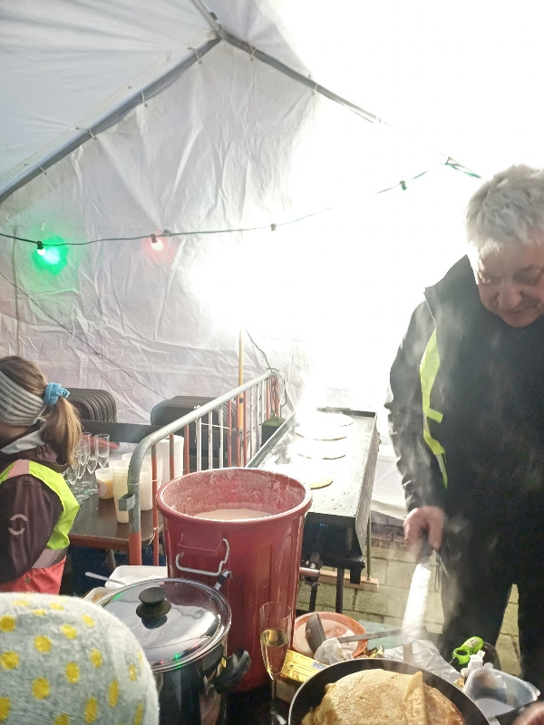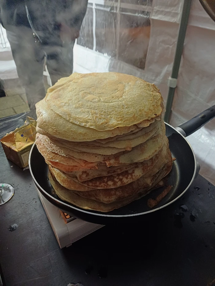 동네 반장 아저씨가 신나게 서양 전을 굽습니다. 우리 아이들은 벌써 준비 끝입니다. 앉아서 팬케이크가 나오기를 기다립니다. 어른들은 시청에서 지원해 준 다과비로 산 스페인 샴페인인 까바를 홀짝입니다. 공짜는 역시 맛있습니다.