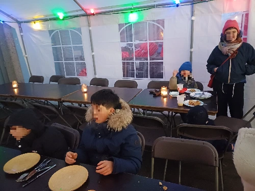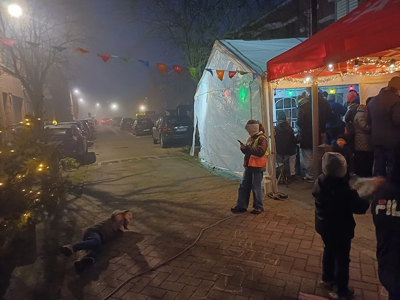 밖은 춥고 어둡지만 이날만큼은 아이들도 신나게 뛰어놀고 다른 동네아이들과 같이 게임도 하고 길바닥에 드러누워 놀기도 합니다. 우리가 사는 스트리트는 이날 동네잔치로 인해 길을 다 막아 놓아서 어떠한 차도 지나갈 수 없습니다. 그러니 아이들이 저리 신나게 뛰어놀지요. 평소 같으면 어림도 없는 길바닥에 드러눕기도 오늘은 신나게 해 봅니다.