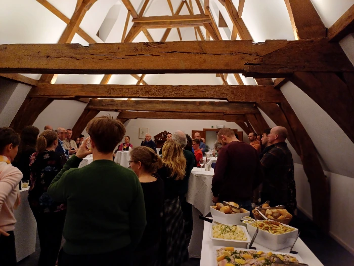 저는 공무원입니다. 그 말인즉슨 신년회 같은 거 할 때 휘황찬란하게 못 한단 뜻입니다. 간소하고 검소한 신년회이죠. 김영란법은 없어도 나랏돈으로 신년회를 하는데 흥청망청 쓸 수는 없으니까요. 벨기에에서도 사기업에서는 멋들어진 레스토랑에서 하고 그럽니다. 저희는 제가 근무하고 있는 대학의 작은 홀에서 케이터링을 불러 신년회를 하고, 스탠딩으로 이루어집니다. 빨리 먹고 빨리 가라는 얘기죠.