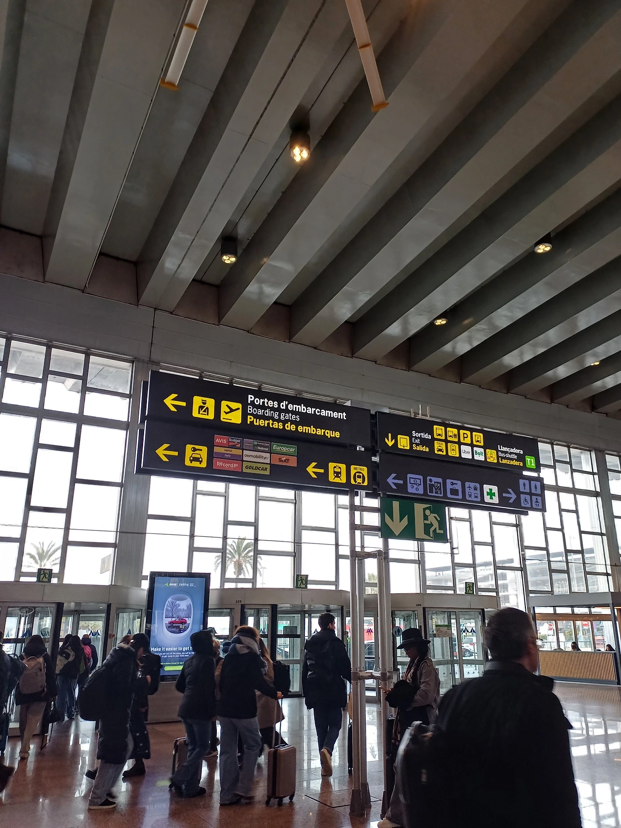 비 온다더니 생각보다 날씨가 나쁘지는 않다. 바르셀로나 엘 프라트 국제공항은 역시 관광의 도시답게 큰 공항이었다. 여기서 나가는 방법은 간단하다. 사람들이 많이 가는 곳을 따라가면 된다. 그리고 주의 깊게 화살표를 보고 따라가면 된다. 화살표만 잘 봐도 반은 된 거다.