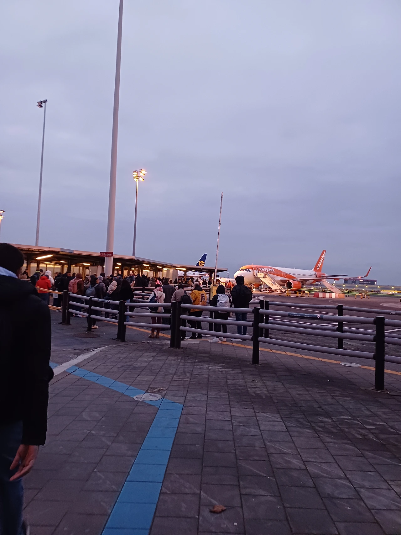 미쉐린 타이어 마스코트처럼 옷을 겹겹이 입기를 잘했다. 밖에서 기다리는데 너무 추워 이가 딱딱 부딪히고 머리가 쭈뼛쭈뼛 섰다. 저렇게 기다리고 있는 이유는 라이언에어는 버스처럼 운행이 되기 때문에 전 비행의 승객들이 내리자마자 바로 타기 때문이다.