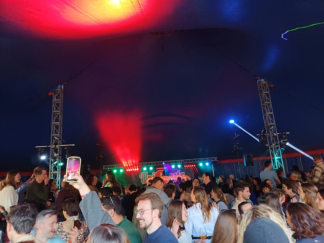 그래서 계속해서 먹습니다. 동료들이 내년에 공짜 폐지하고 돈 받고 팔면 제가 너무 많이 먹어서 일 것이라고 합니다. 다들 술이 그득그득 오르고, 저 텐트 안에서는 디제이 공연이 펼쳐집니다.