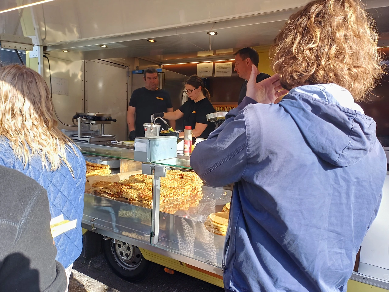 푸드트럭은 피자, 팬케익, 와플, 타코, 햄버거트럭이 쭉 줄지어 있습니다.