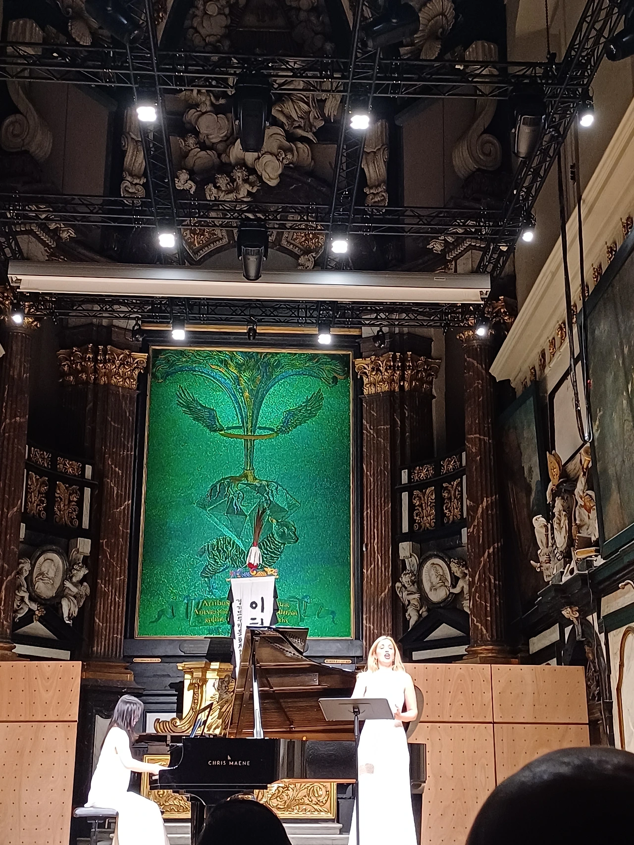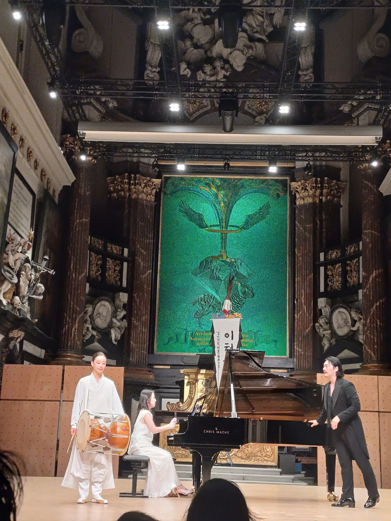 두 번째 클래식 파트가 시작되고, 한국인 피아니스트 두 명이 함께 피아노를 연주했고 다음으로는 벨기에인 소프라노가 금강산을 불렀습니다. 개인적으로 좋았던 파트는 아베마리아를 한국인 클래식 바리톤과 여성 전통음악 연주자가 장구를 치며 함께 노래하던 부분이었습니다. 클래식과 우리의 소리가 어우러져 아주 아름다웠습니다.
