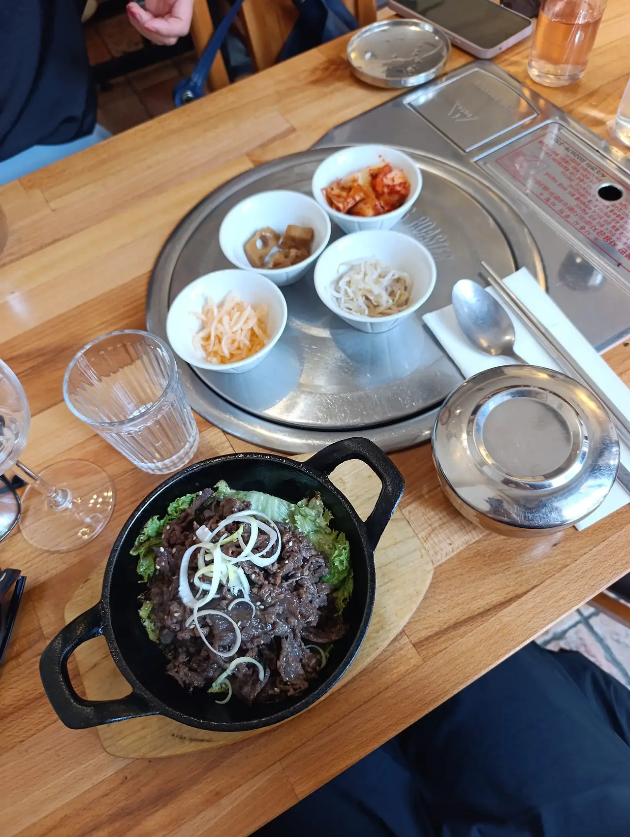 그런데, 맛이 너무 좋다. 게다가 한국인 직원분께서 친절하게도 계속 김치도 리필해 주시고 런치메뉴는 15유로에 만두와 새우튀김 중 택 1, 메인메뉴는 제육. 불고기. 비빔밥 중 하나를 선택할 수 있었다. 반찬도 풍성하고 카트린 드 메디치고 프랑스 미식이고 간에 나에게는 한식이 만만세다!
