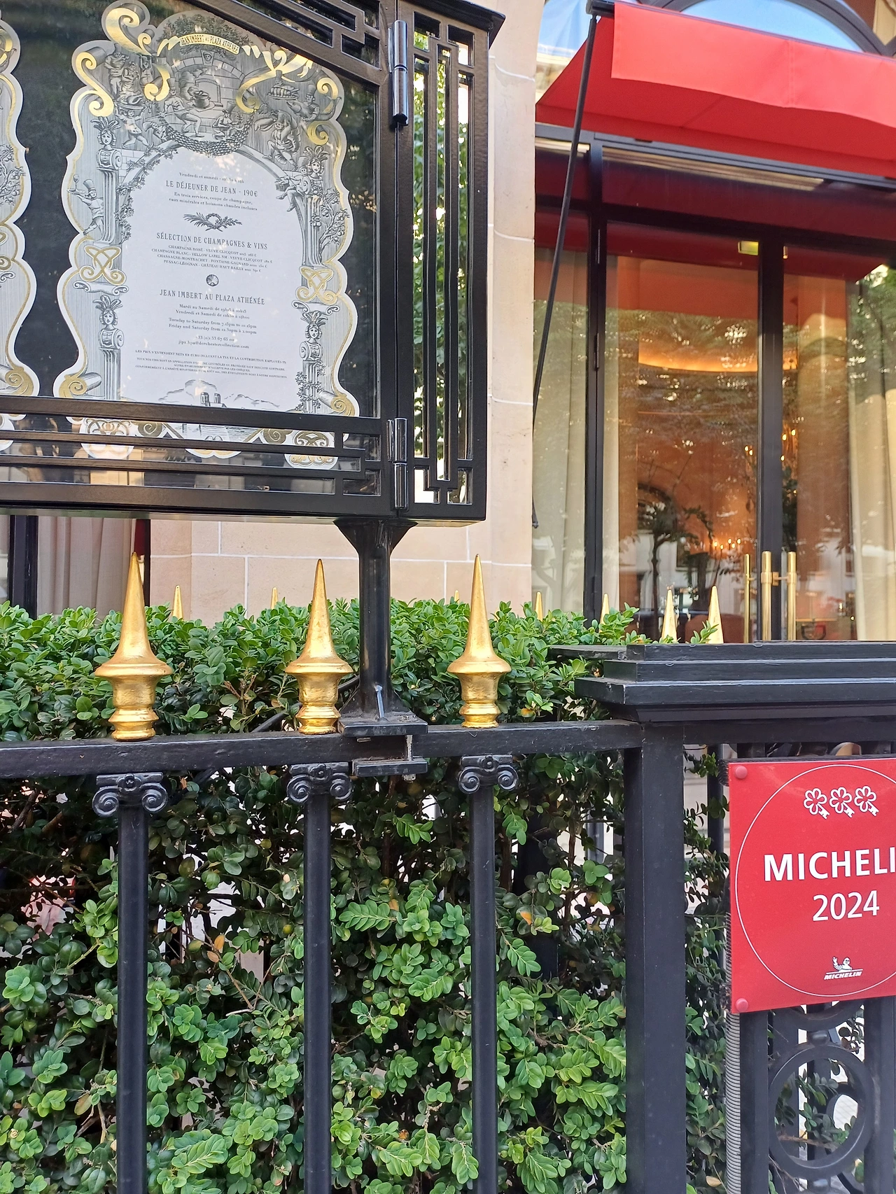 가다가 엄청나게 파리스러운 한 건물과 빨간색 천막과 빨간 제라늄꽃으로 장식된 어느 호텔을 지났다. 자세히 보니 미슐랭 쓰리스타 레스토랑이다. 한참을 벨루치언니와 메뉴를 들여다보며 상상의 나래를 펼쳤다.