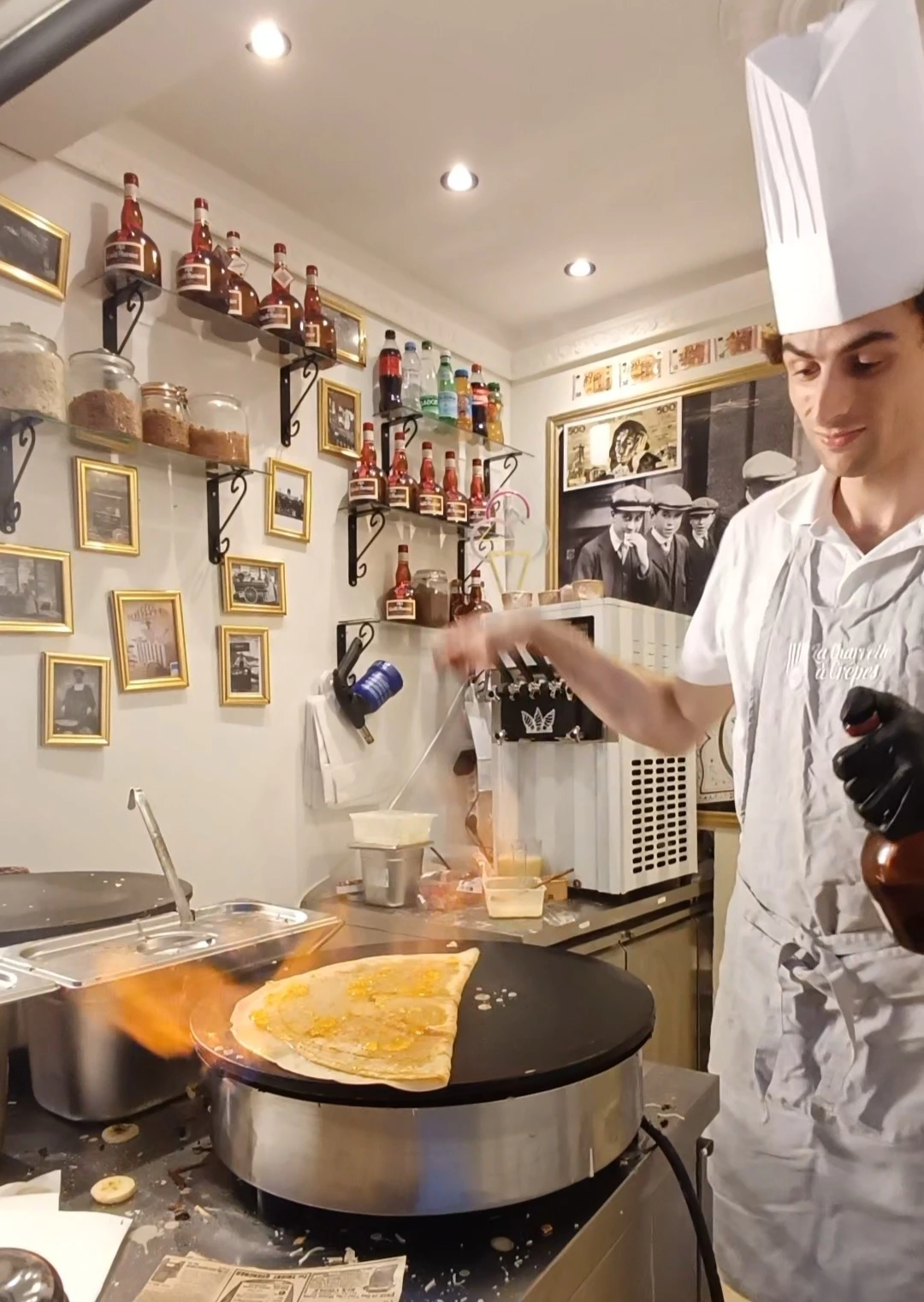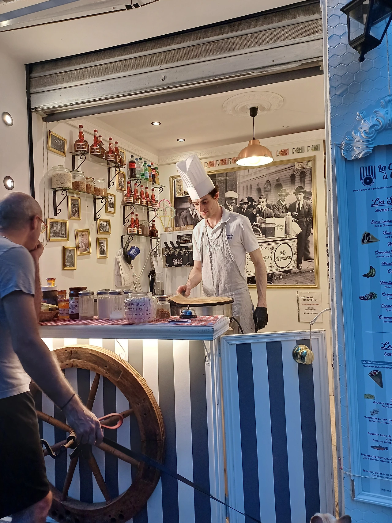잠깐 서서 아저씨의 빈대떡 굽는 솜씨를 봤는데 예사롭지 않다. 그리고 전 에피소드들에서 프랑스의 상술에 대해 계속 말해왔던 것처럼, 이 아저씨도 상술이 그냥 아주 예술이다. 누가 크렙을 사면, 웃으며 마실 것도 드릴까요? 자동 발사다. 이런 곳은 물 장사도 같이 하기 때문에 음료까지 팔면 일석이조인데 아저씨가 아주 너무 유능하시다.