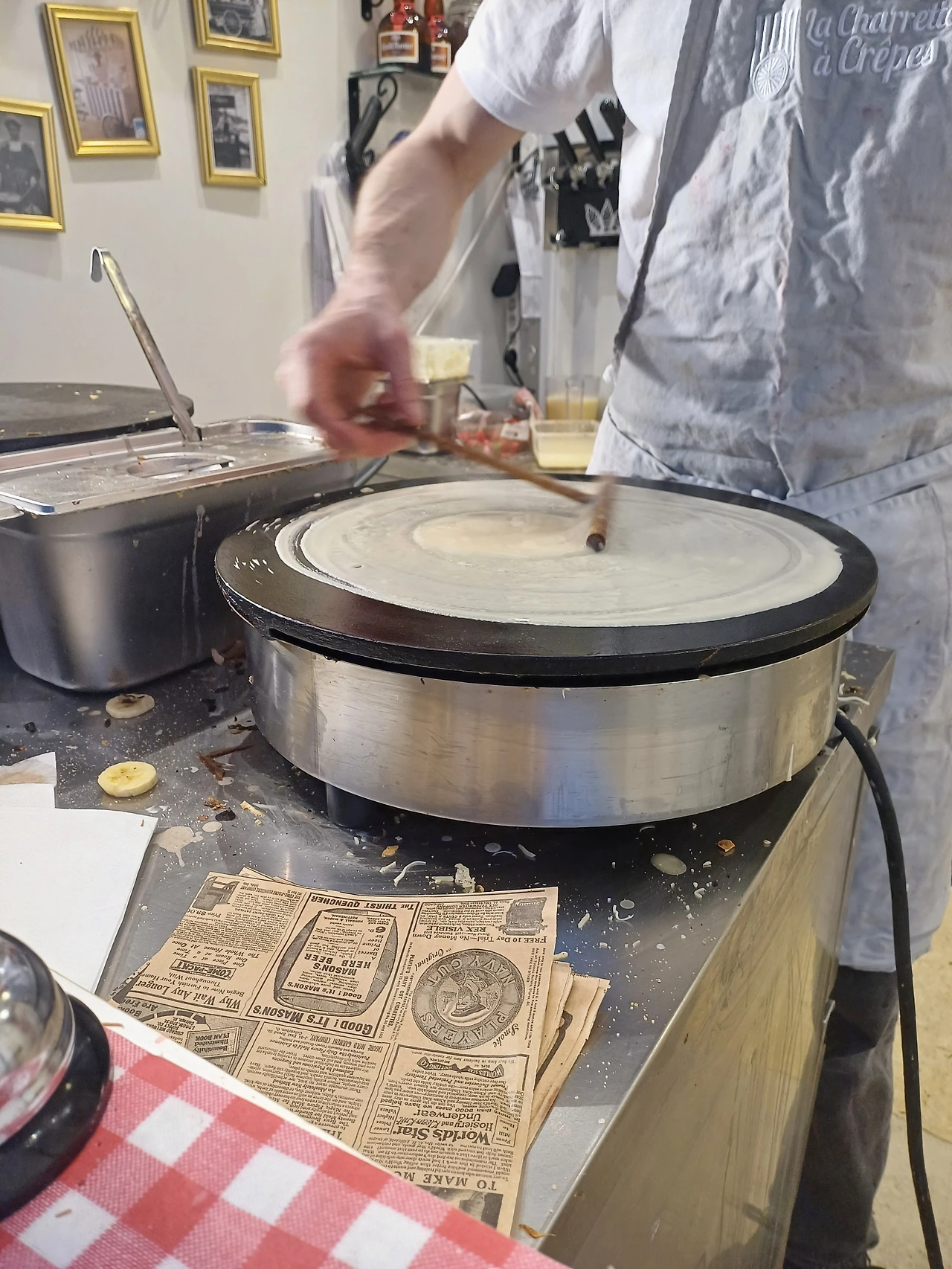 나는 밤크림 (Crème de marron)이 들어있는 달달한 크렙을 선택했다. 한 입 물었더니, 밤의 고소하고 달달한 냄새가 올라온다. 양갱과 비슷하지만 피넛버터를 뜨듯한 빵에 올렸을 때처럼 녹아내린다.