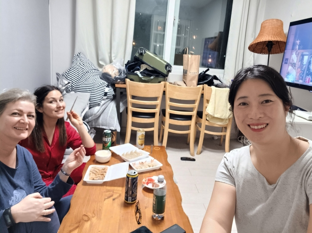 그리고 또 다른 장점은 인간관계의 폭이 상상할 수 없을 정도로 팽창할 수 있는 가능성을 열어준다는 것입니다. 이탈리아어가 좋아서 시작한 이탈리아어 공부로 저는 이탈리아에 사는 진짜 이탈리아인들과 친구가 되어 한국도 여행하고 인생네컷 부스에서 유치한 사진도 찍어보고, 야심한 시각에 길에서 파는 김이 모락모락 나는 김치만두를 야식으로 먹는 백미도 알려줄 수 있었습니다. 밀라노에 사는 친구네 집에 방문해서는 한국요리를 알려주겠다고 나서서 등갈비찜을 만들어 주었더니 동네사람들이 다 와서 구경하는 일이 벌어지기도 했고, 로마에 사는 구독자분들에게도 낯설지 않으실 벨루치언니의 어머님댁에서 며칠 간 배가 터질 정도로 먹으며 지내는 경험을 하기도 했습니다. 이탈리아에 사는 친구의 이탈리아어만 가능하신 어머님과도 영상통화로, "빨리 놀러 오렴, 내가 밥 또 해줄게. 다음에는 애들도 데리고 와."라는 말을 들을 수 있는 것도 제가 이탈리아어를 취미로 공부하지 않았더라면 절대 일어나지 않았을 일이겠지요.
