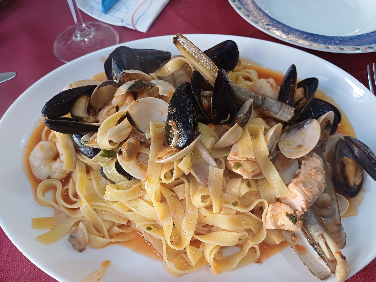 내가 선택한 음식은 Tagliatelle Scoglio인데 이탈리아어를 번역하면 바위 파스타이다. 쉽게 말하면 시푸드 파스타인데 이름의 기원은 어부들이 바위 가까이에 배를 정박해 놓고, 방금 잡은 싱싱한 해산물로 뚝딱 만들어 해 먹었다 해서 바위 파스타이다.