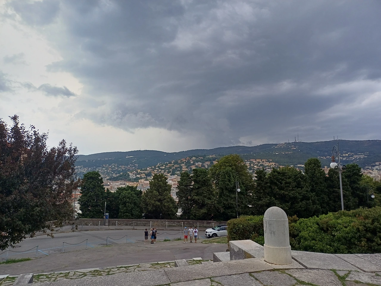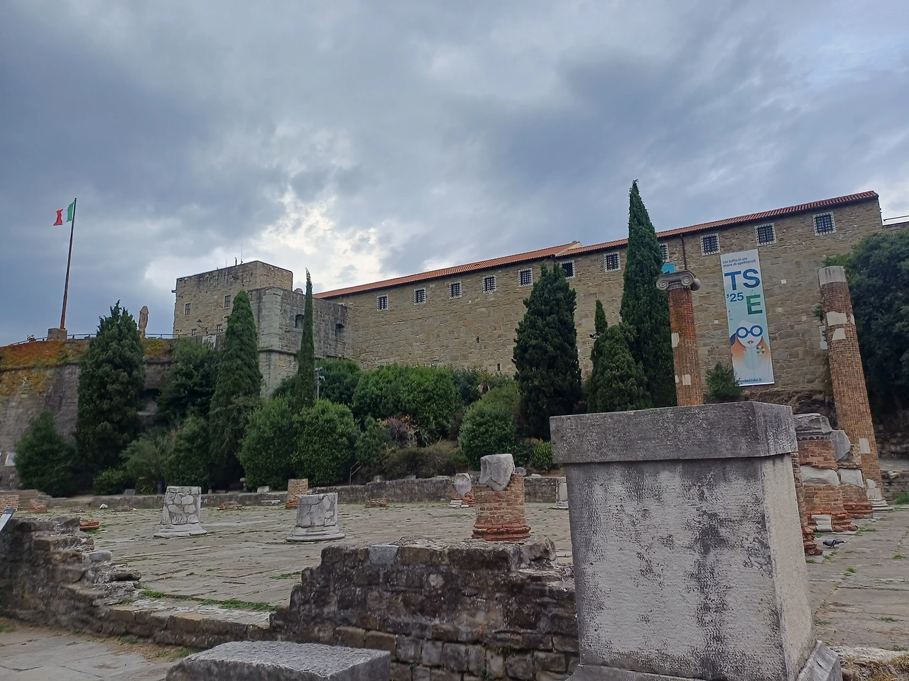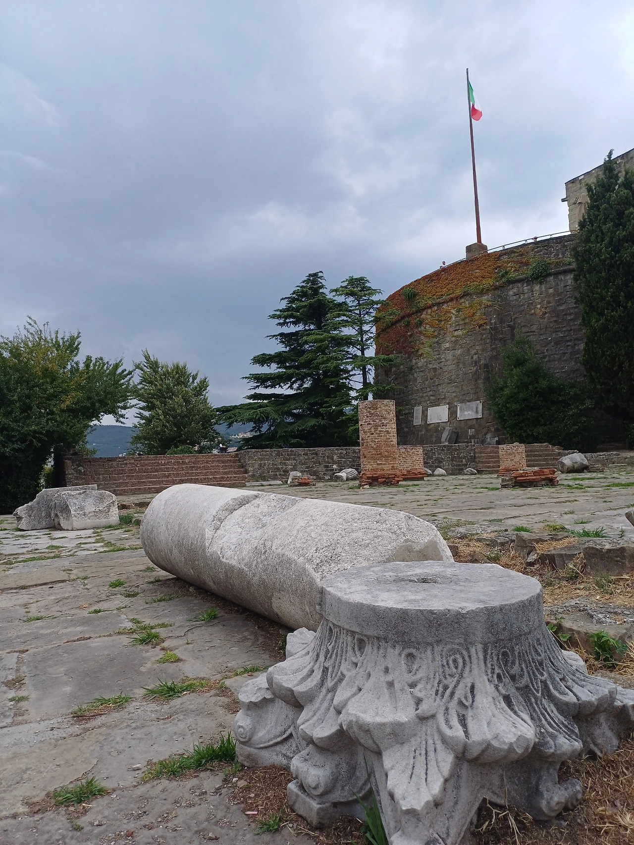 성에 가고 싶다고 노래를 불렀건만, 한 가지를 간과했다. 대부분의 성은 언덕 위에 있다는 것을... 가파른 언덕을 오르는데 구름은 점점 짙어졌다. 마음이 급해져 뛰다시피 언덕을 오르니, 날도 습한데 땀이 났다. 드디어 정상에 도착했다. 로마시대의 포럼터가 보였다. 산 주스토 성의 정상에서 바다도 보이고, 시 중심가도 한눈에 보였다.