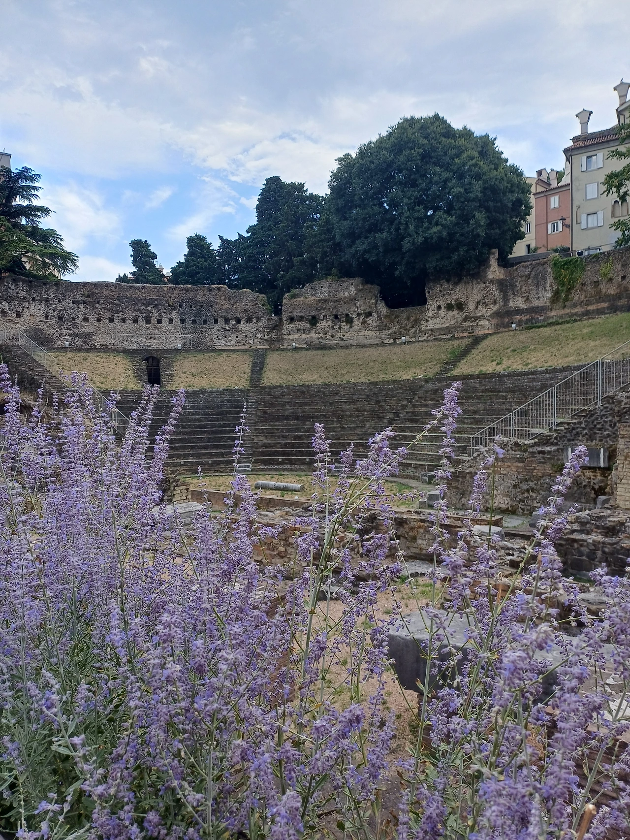 아들까지 성에 가겠다고 하는 바람에 베짱이는 내키지 않는 표정으로 따라나섰다. 산 주스토 성(Castello San Gisuto)에 가는 길에 로마시대의 원형경기장 터도 보았다. 풀라의 잘 관리되고 보수된 원형경기장과는 달리 방치된 채, 세월의 흔적이 고스란히 느껴졌다.