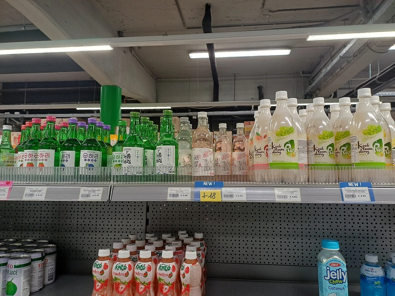 요즘엔 한국 소주와 막걸리도 인기가 많습니다. 다양한 과일맛 소주와 막걸리가 있는데 실제로 친구집에 초대되었을 때 와인보다는 소주를 주면 좋아하더라고요.. 이외에도 데미소다와 망고소다, 멜론소다, 밀키스 같은 한국 음료수도 판매됩니다.