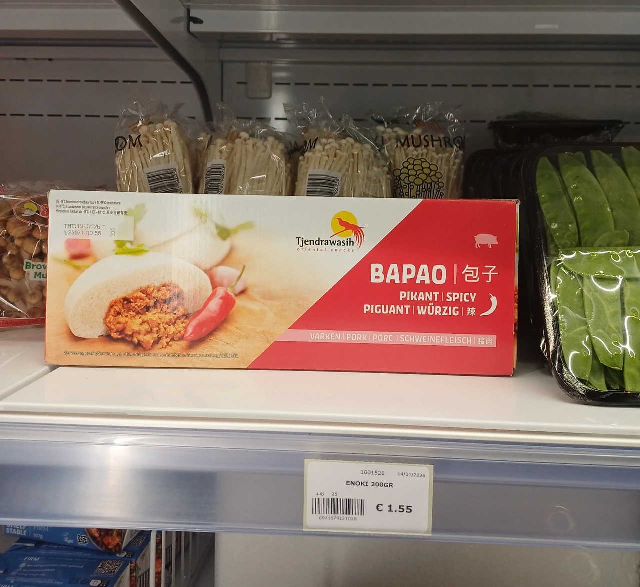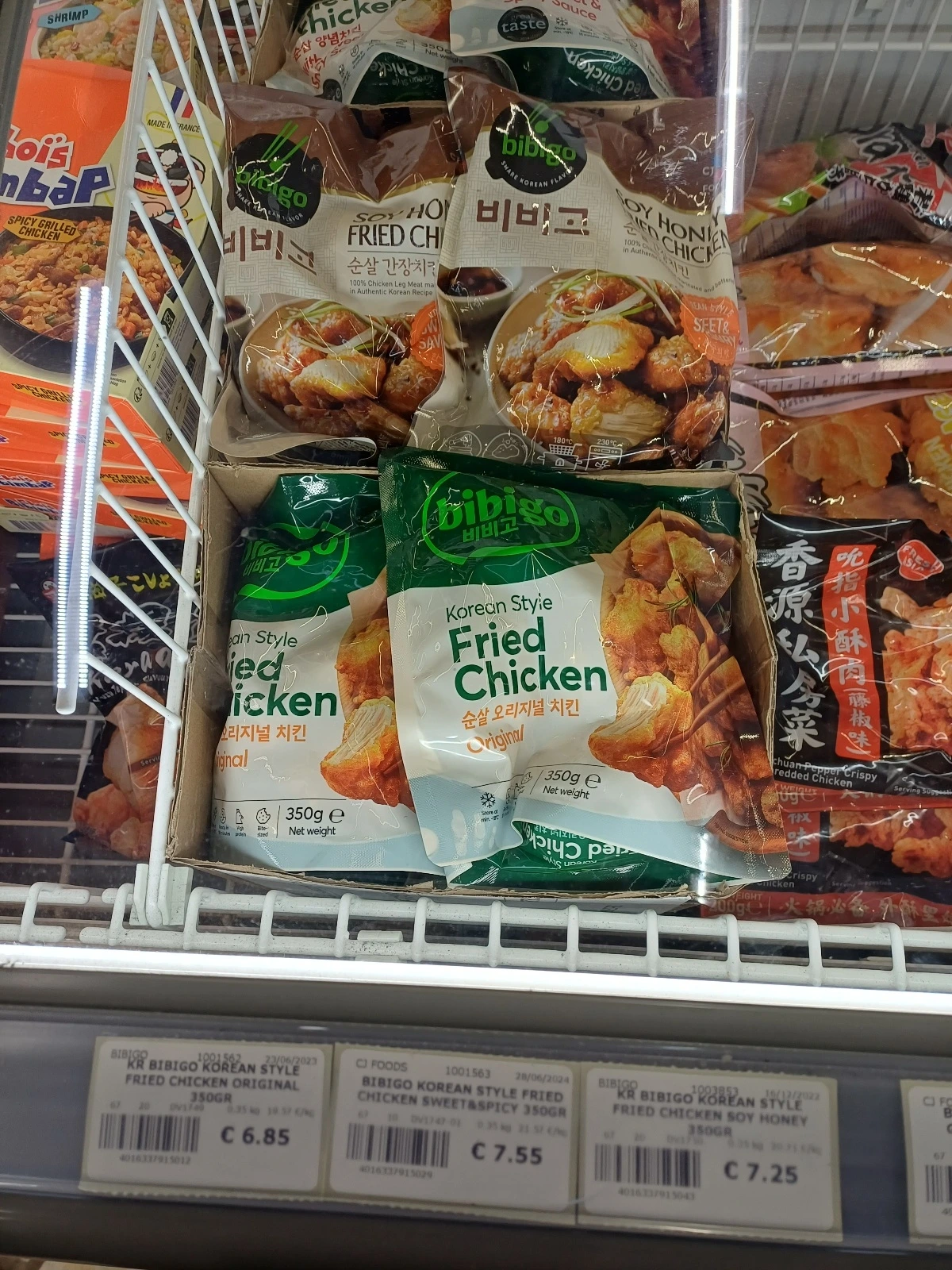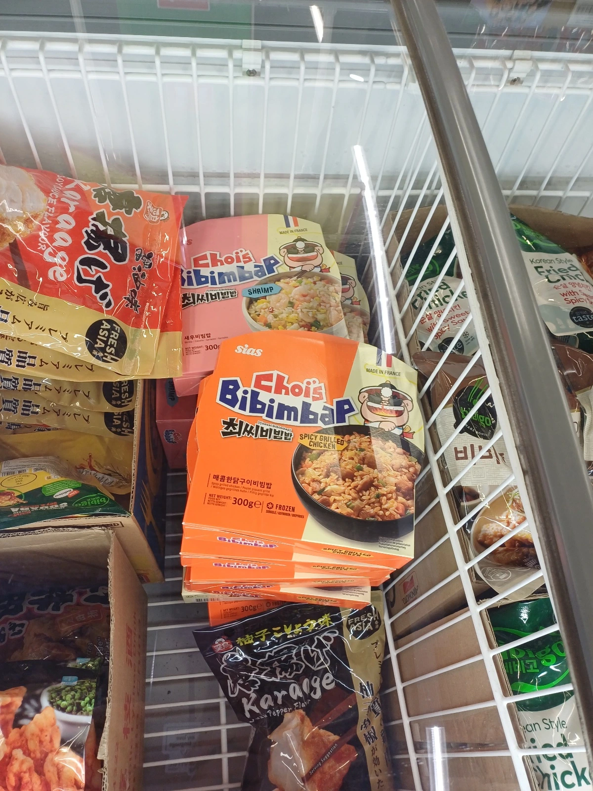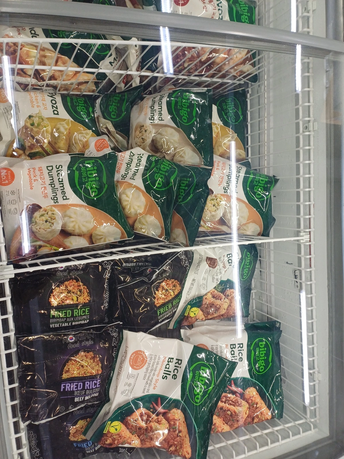 비비고 만두가 그득그득 들어있는데요, 이 비비고 만두는 벨기에의 아시아 상점이 아닌 일반 슈퍼에서도 찾아볼 수 있을 정도로 인기가 있습니다. 이외에도 볶음밥, 비빔밥, 어묵(심지어 종류도 두 개나)이 보이죠?