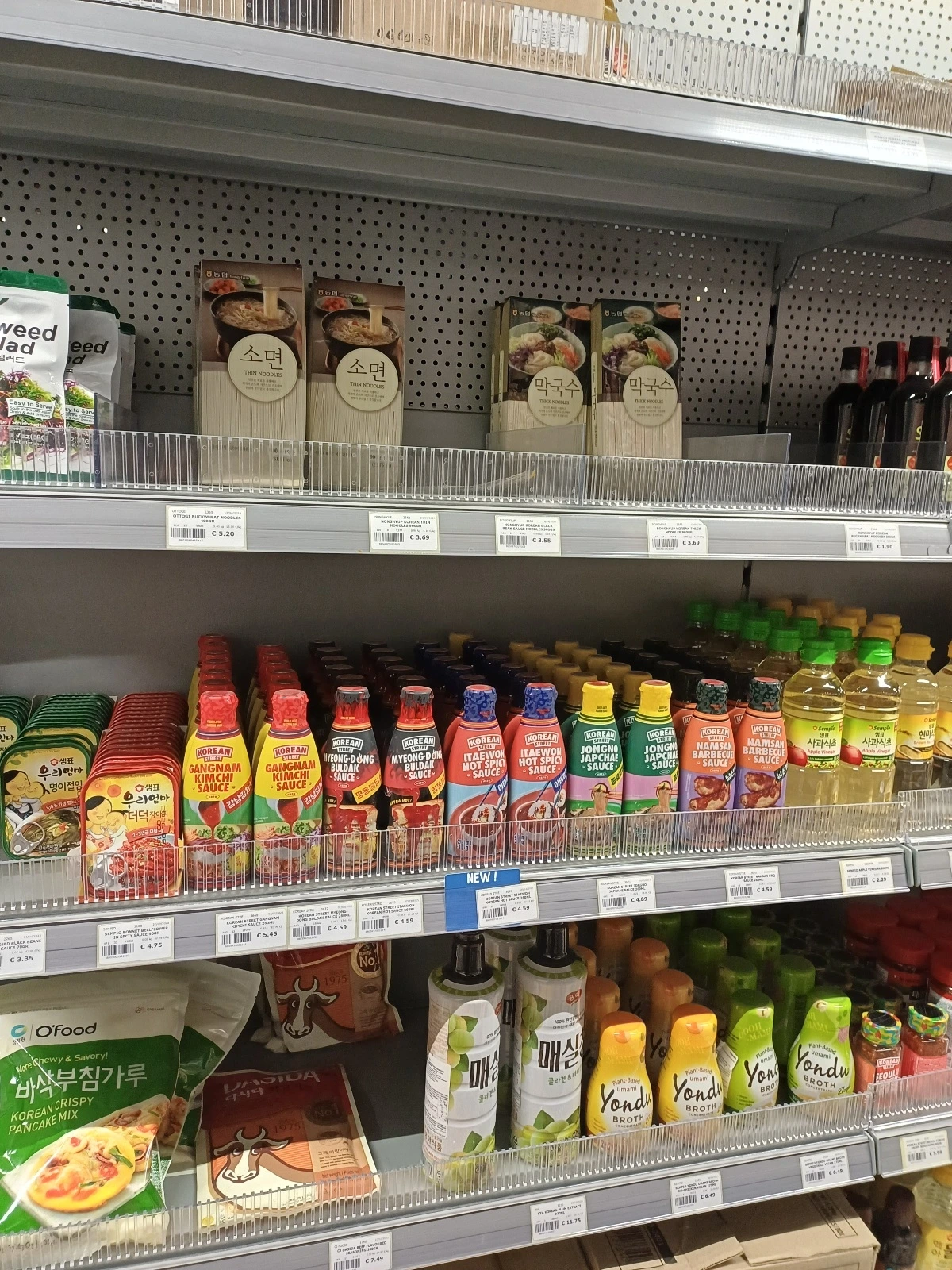 보시다시피, 한국 식품점이 아닌데도 정말 다양한 식품들을 판매하고 있지요? 주인아저씨는 저를 불러서 다음 주에는 훨씬 더 많은 한국 식품들이 입고될 예정이라고 아주 친절하게 알려주셨습니다. 해외생활을 오래 해 온 사람으로서 정말 감사 한 부분입니다. 불과 10년 전 만해도 가장 기본적인 식재료인 고추장도 사기가 쉽지 않았었는데, 한국문화가 널리 퍼지고 인기가 있어 제가 그 덕을 많이 보고 있습니다. 이토록 다양한 식재료를 벨기에에서도 찾아볼 수 있다는 것은 한국문화가 많은 사람들에게 친숙하고 긍정적으로 느껴진다는 의미입니다.