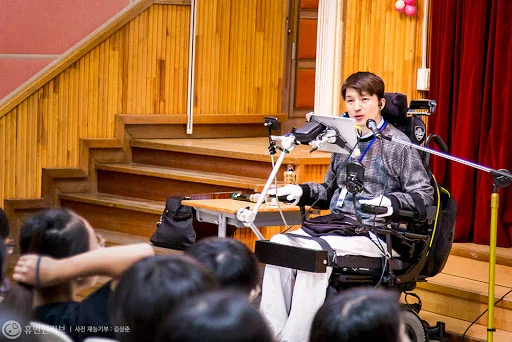 한국에서도 작아진 육체에서 희망을 보여준 사람이 있습니다. 바로 장애 인식 교육 강사로 활동하고 있는 이원준 강사입니다. 육군 부사관 출신의 건장한 남자는 예기치 못한 자전거 사고로 어깨 아래로 움직일 수 없는 척수장애인이 되었습니다. 부드러운 목소리로 "망했다"라는 단어 앞에 희만 붙이면 "희망했다"가 된다는 강의로 할 수 있다는 자유의 정신과 희망을 전하고 있습니다.
