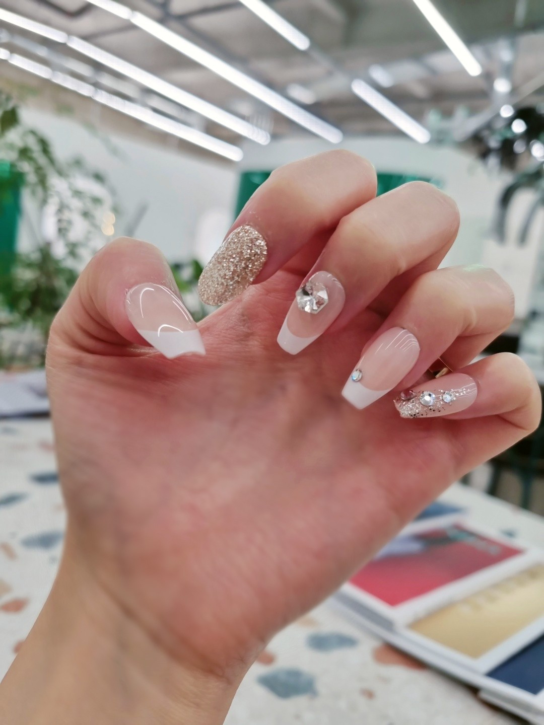 사실 신부 준비물 중 소소하지만 가장 만족도가 높았던 것은 '탈부착 가능한 네일'이었다. 평소에 손톱을 기르지 않는 데다 간단하게 손톱 관리만 받은 탓에 사진이 예쁘게 나오지 않을 듯했다. 급하게 올리브영에서 네일을 샀다. (물론 웨딩드레스를 고려해서 최대한 투명한 색상이되 비즈와 반짝이가 많이 들어간 네일을 골랐다.)