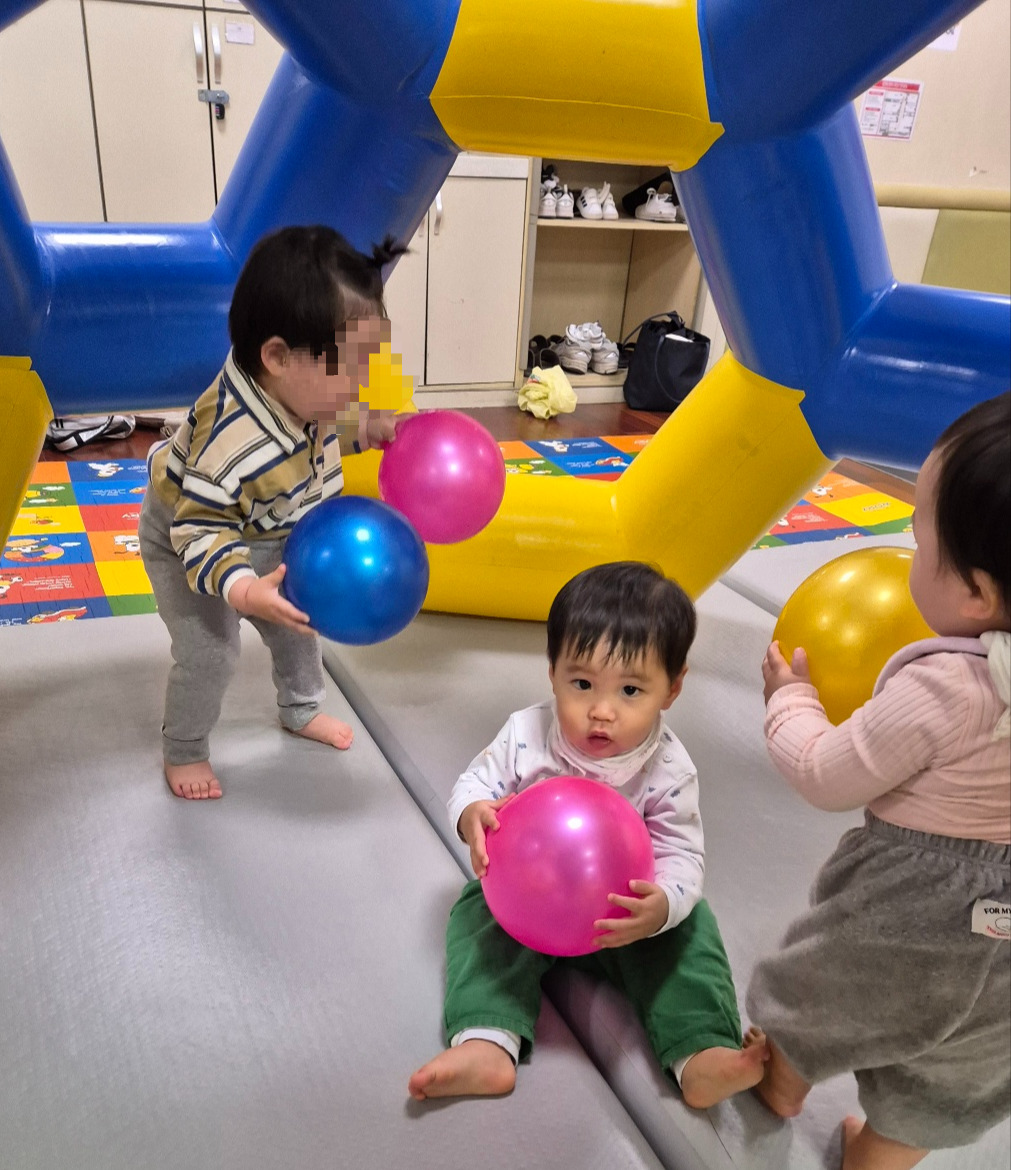 신체놀이 수업에선 트니트니와 아만타타를 두고 저울질을 했다. 트니트니는 워낙 유명한 프로그램이기도 했고 내 주위에서 트니트니를 보낸 엄마들의 만족도가 높았다. 그만큼 경쟁이 치열했고 특히 트니트니에서 잘 알려진 선생님의 수업은 접수 시작 5분 만에 마감될 정도였다. 다른 유명한 선생님의 수업은 남아있었지만 시간대가 주안이의 낮잠 시간과 겹쳤다. 아이의 낮잠 시간을 무시하고 일단 강행할 것인가를 고민하던 차에 아만타타를 발견했다. 트니트니와 아만타타의 가장 큰 차이는 신체놀이 외에 별도 해결과제가 있는지 여부인 듯하다. 트니트니는 매 수업마다 특정 콘셉트가 있고 그 콘셉트에 알맞은 해결 과제가 주어진다. 내가 들어본 원데이 클래스는 '80년대 시절'이라는 콘셉트 하에 아이들이 옛날 교복을 입고 터널 등을 통과하며 연탄을 옮기는 과제가 있었다. 아만타타는 매 수업마다 그런 콘셉트는 없다. 대신 신체놀이의 강도가 훨씬 더 세다! 아만타타는 엄마들도 같이 운동시킨다는 말이 과장이 아니었다. 아이가 터널에 들어가면 난 반대편으로 최대한 빠르게 달려가서 아이가 나오게끔 유도해야 한다. 높은 미끄럼틀을 태우기 위해 아이를 번쩍번쩍 들어 올리기도 해야 한다. 40분 동안 에어바운스 위에서 아이를 걷게 하거나 고무공을 던지게 하는 등 실컷 놀아주면 엄마도, 아빠도 모두 땀범벅이 될 정도다. 아이도 아만타타를 듣고 온 날은 유독 잘 잔다. 또한, 선생님과 하이파이브, 선생님한테 사탕 받기, 준비체조 등을 통해 아이가 할 수 있는 행동도 다양해진다. 결과적으로, 난 아만타타가 만족스러워서 여름 학기도 들을 예정이다.