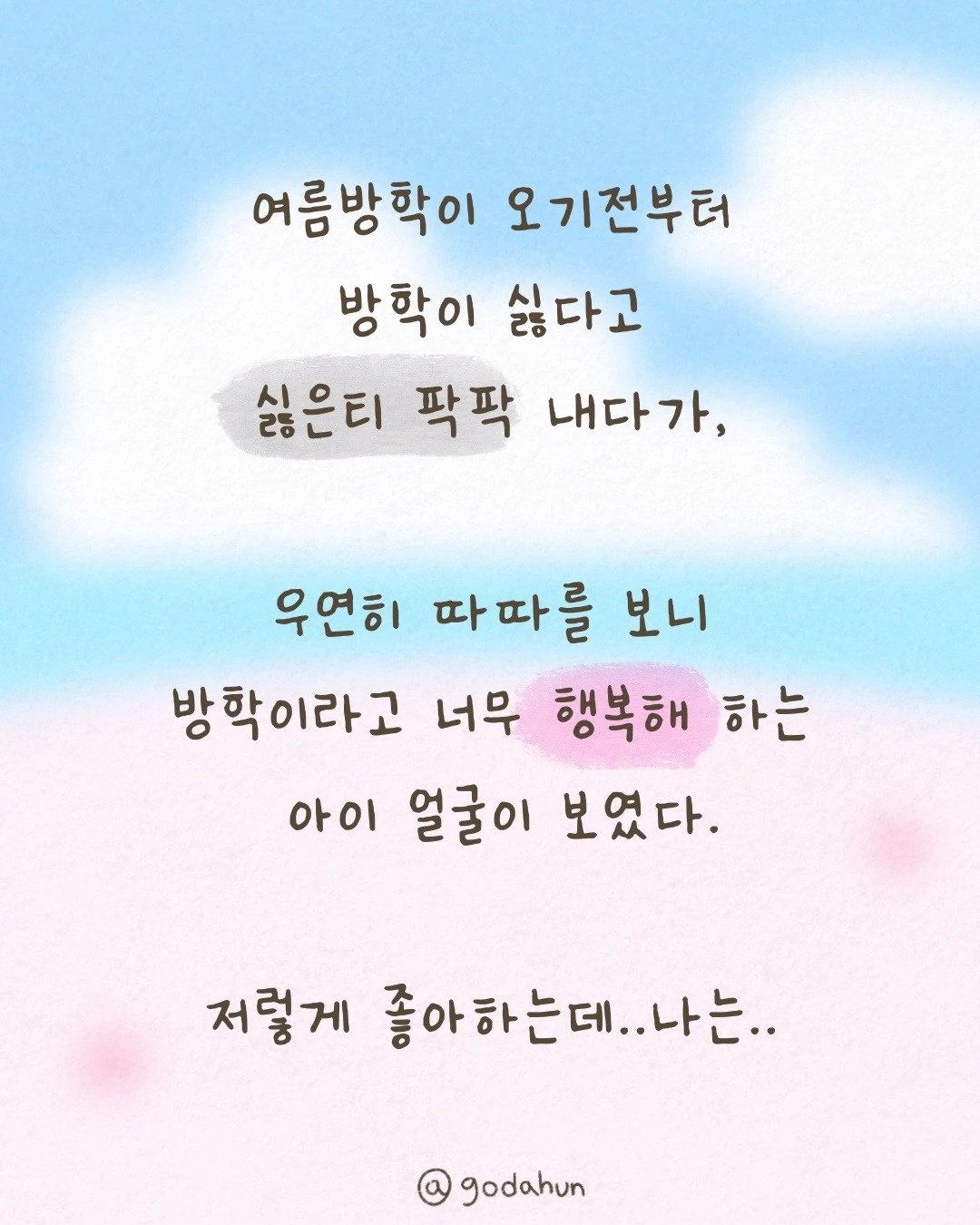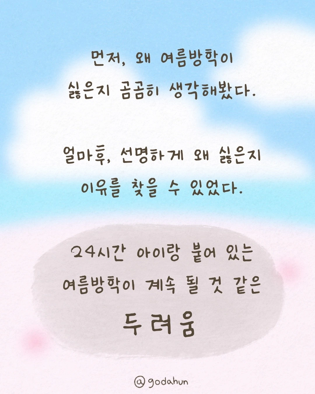 그래서 단단해졌냐고 물으면, 여름방학이 정말 싫다는 이런 글을 안 썼겠지.