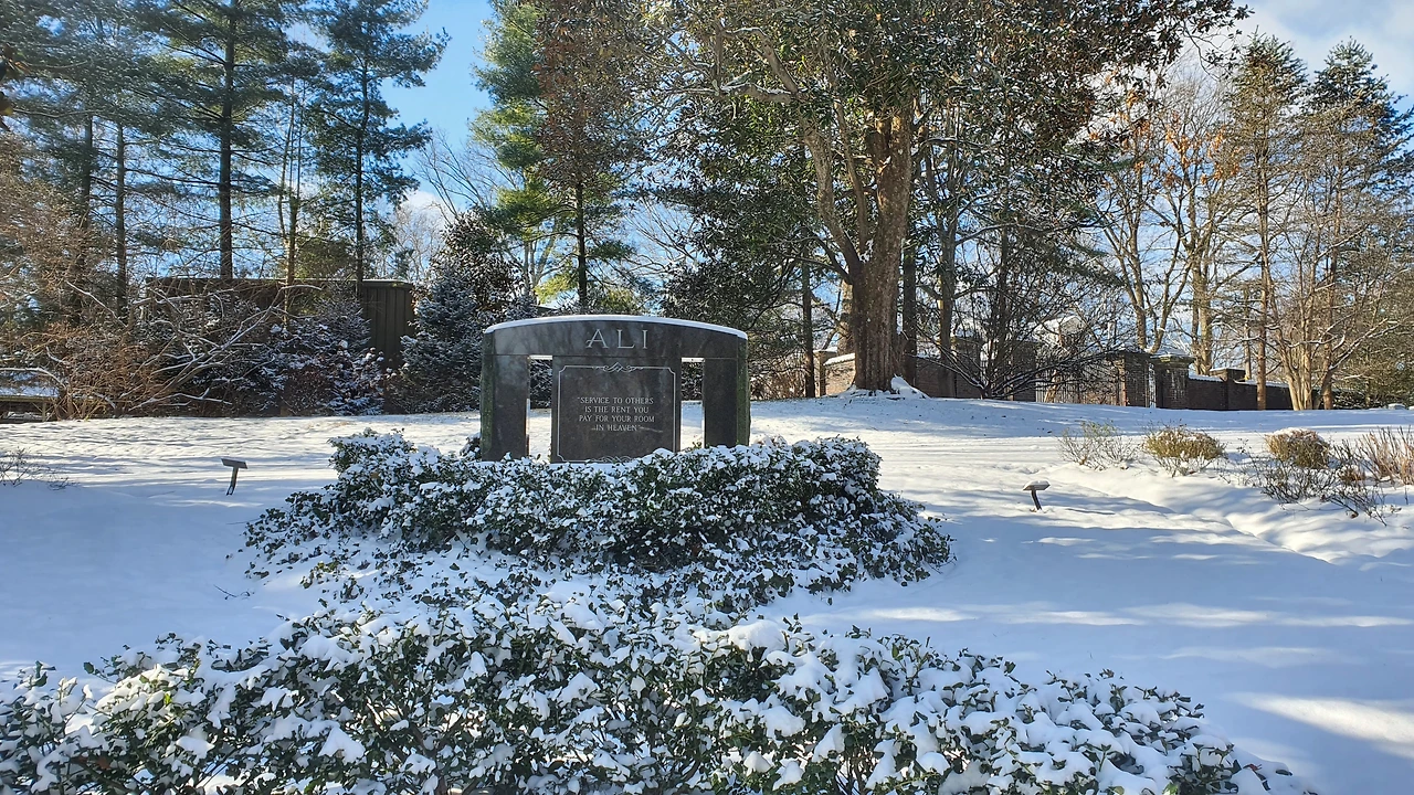 무하마드 알리의 묘 앞에 도착했다. 모든것이 눈에 덥혀있었기에 난 하마터면 알리의 묘를 발로 밟을 뻔 했다. 브라이언이 차에서 내렸고 장갑낀 손으로 바닥을 슥슥 훑었다. 무하마드 알리의 이름이 바닥의 돌에서 나왔다. 여기 누워 계신다고 한다. 그 뒤로 있는 묘비명에는 이렇게 쓰여 있다. 'Service to others is the rent you pay for your room in heaven' 나는 예전에 헌금이 천국의 집값을 내는 줄 알았는데, 현생에서 남을 섬기는 것이 천국의 집값이었구나.