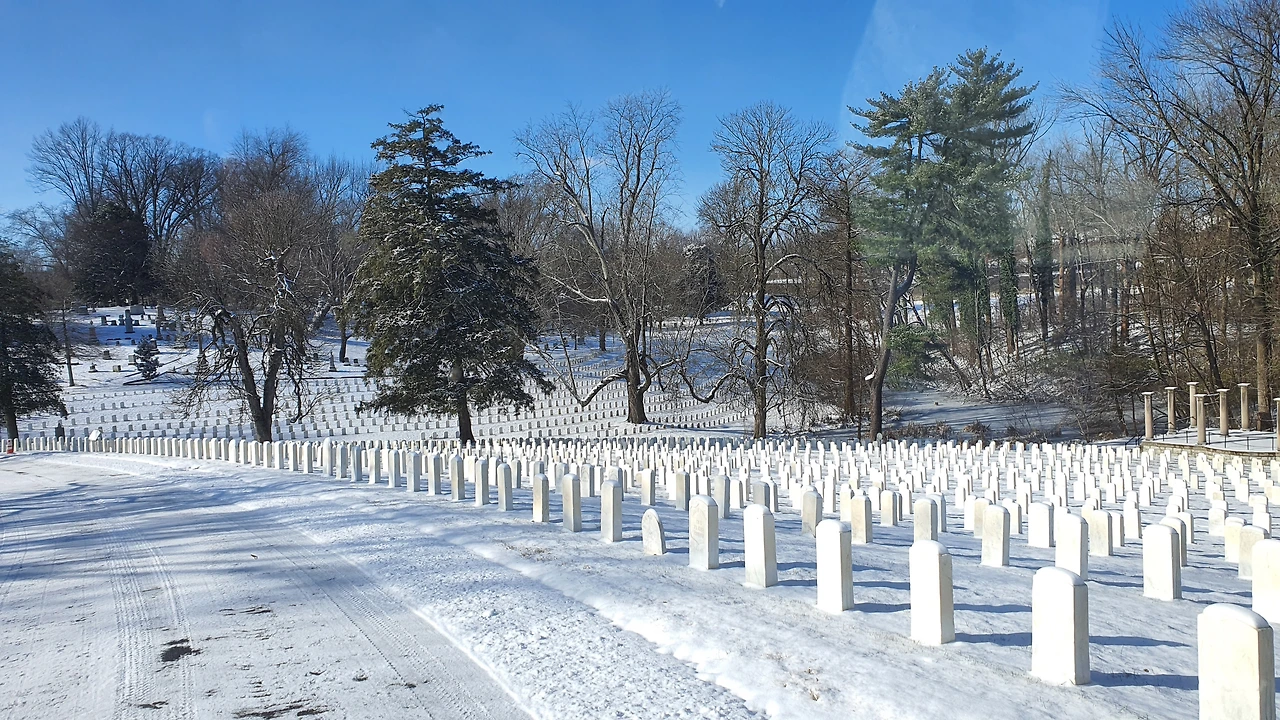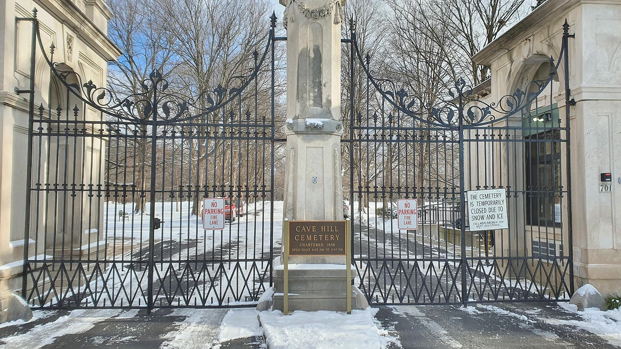 폭설로 인해 굳게 닫힌 공동묘지 정문