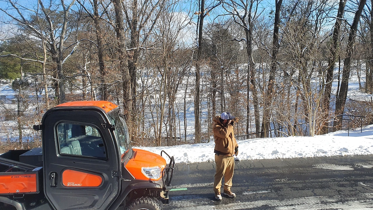 누군가와 통화를 하신 할아버지는 다시 나오더니 조금 기다려 보란다. 갑자기 눈치우는 제설용 작은 트럭이 앞에 달린 넉가래를 떼고 입구에 나타났다. 운전하는 사람은 조금 젊었다. 수염이 더부룩한 묘지 직원 중 하나 였다. 이름은 브라이언.