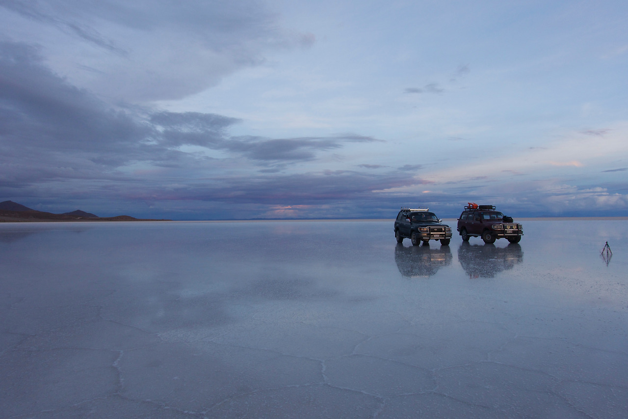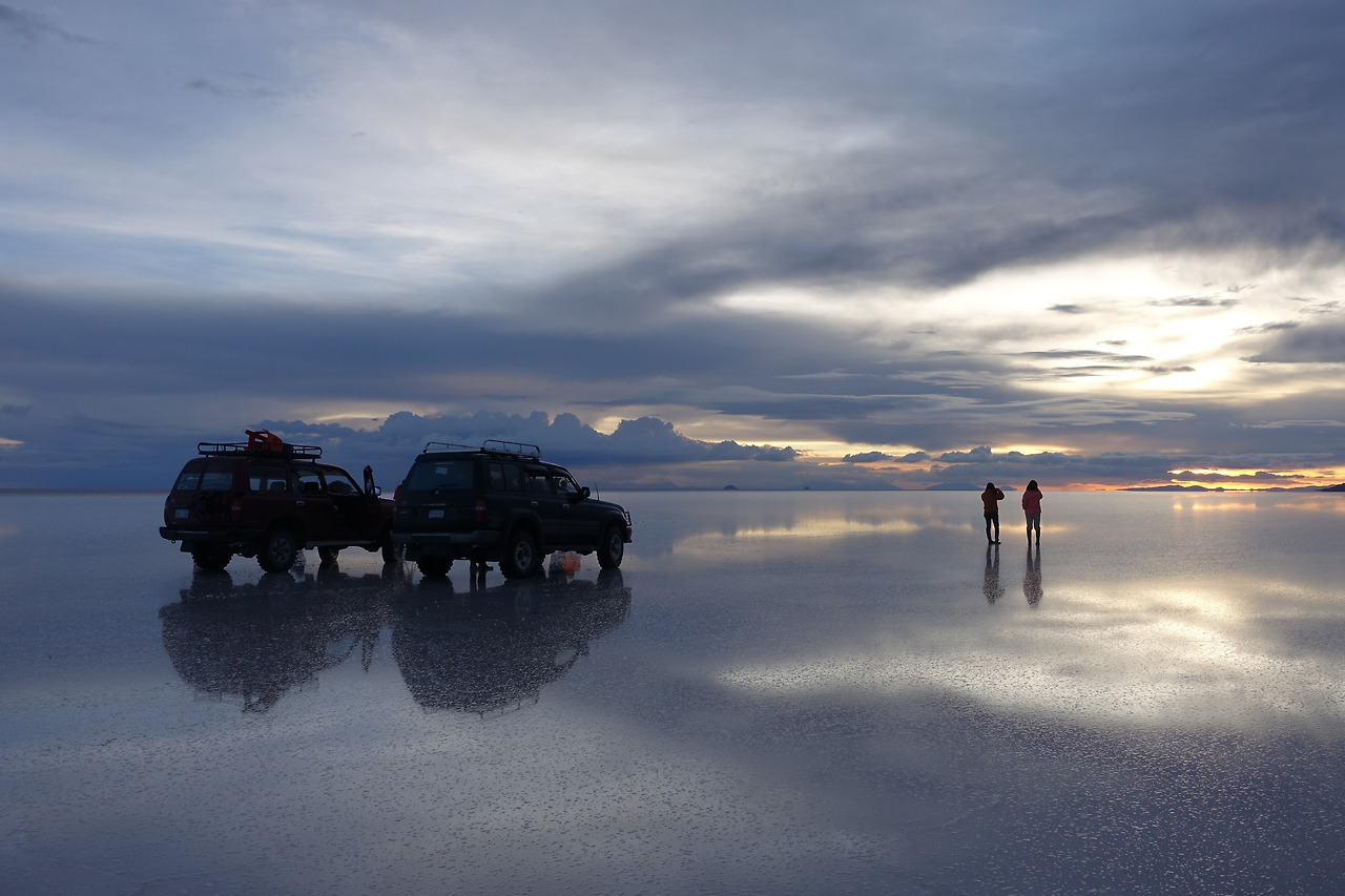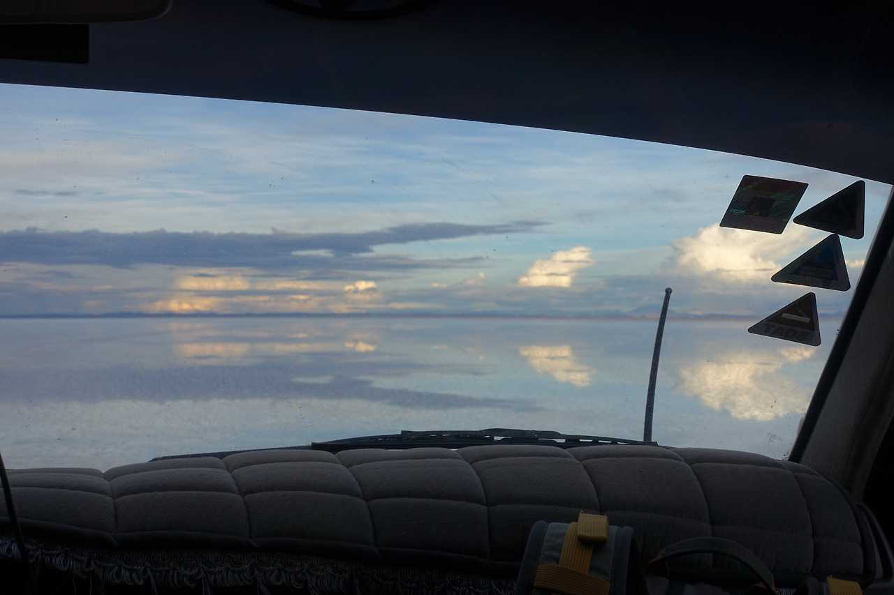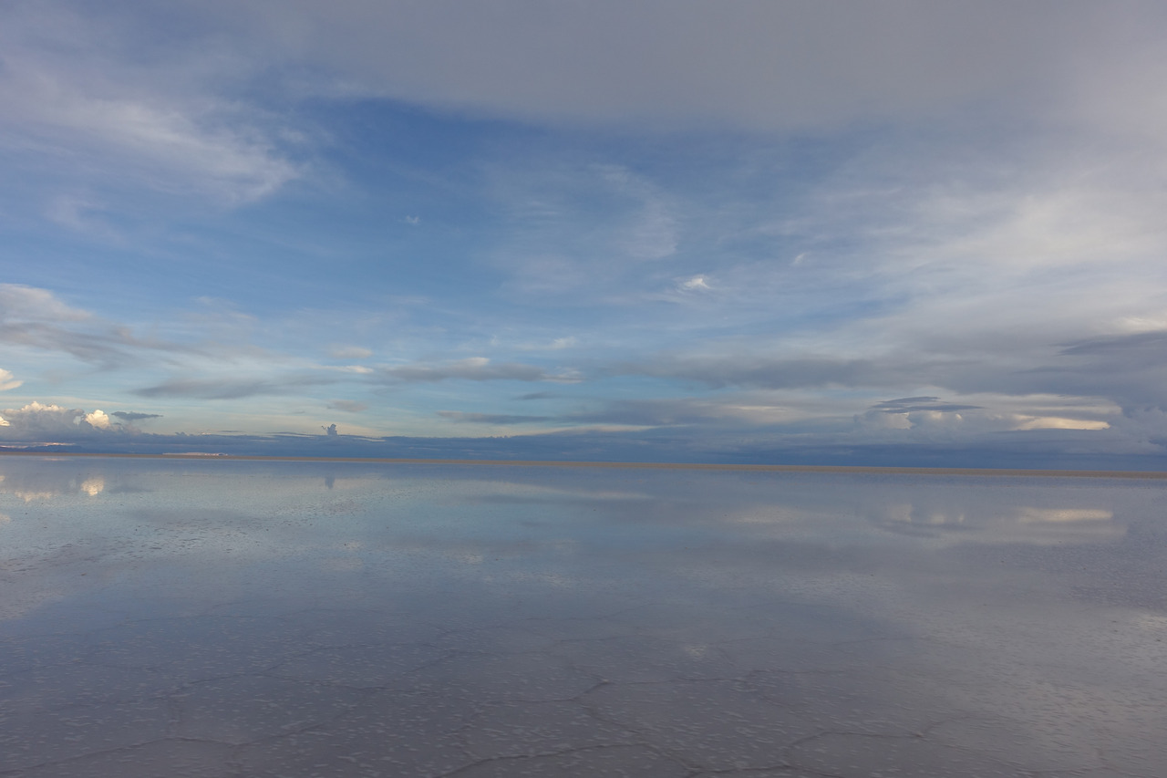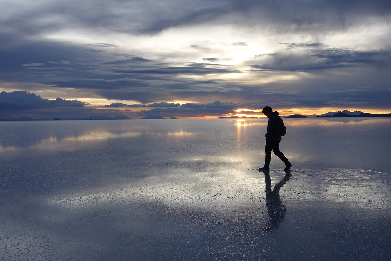 고산증 때문인 건지 모르겠지만, 이상하게도 물이 찬 우유니가 감탄스러울 정도로 좋진 않았다. 그냥 좀 허무했다. 사진을 한참 찍다가 소변이 마려웠다. 소금사막에 화장실이 어디 있겠나. 다른 여행객들이 없는 곳으로 멀리 걸어가서 방뇨했다. 육각형 블록 모양 바닥에 대고 쉬이이이이. 뜨뜻한, 한 때는 내 것이었던 소변을 방류하니 등골이 싸늘해졌다.