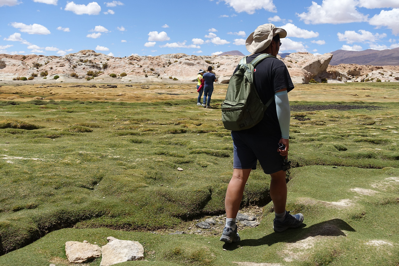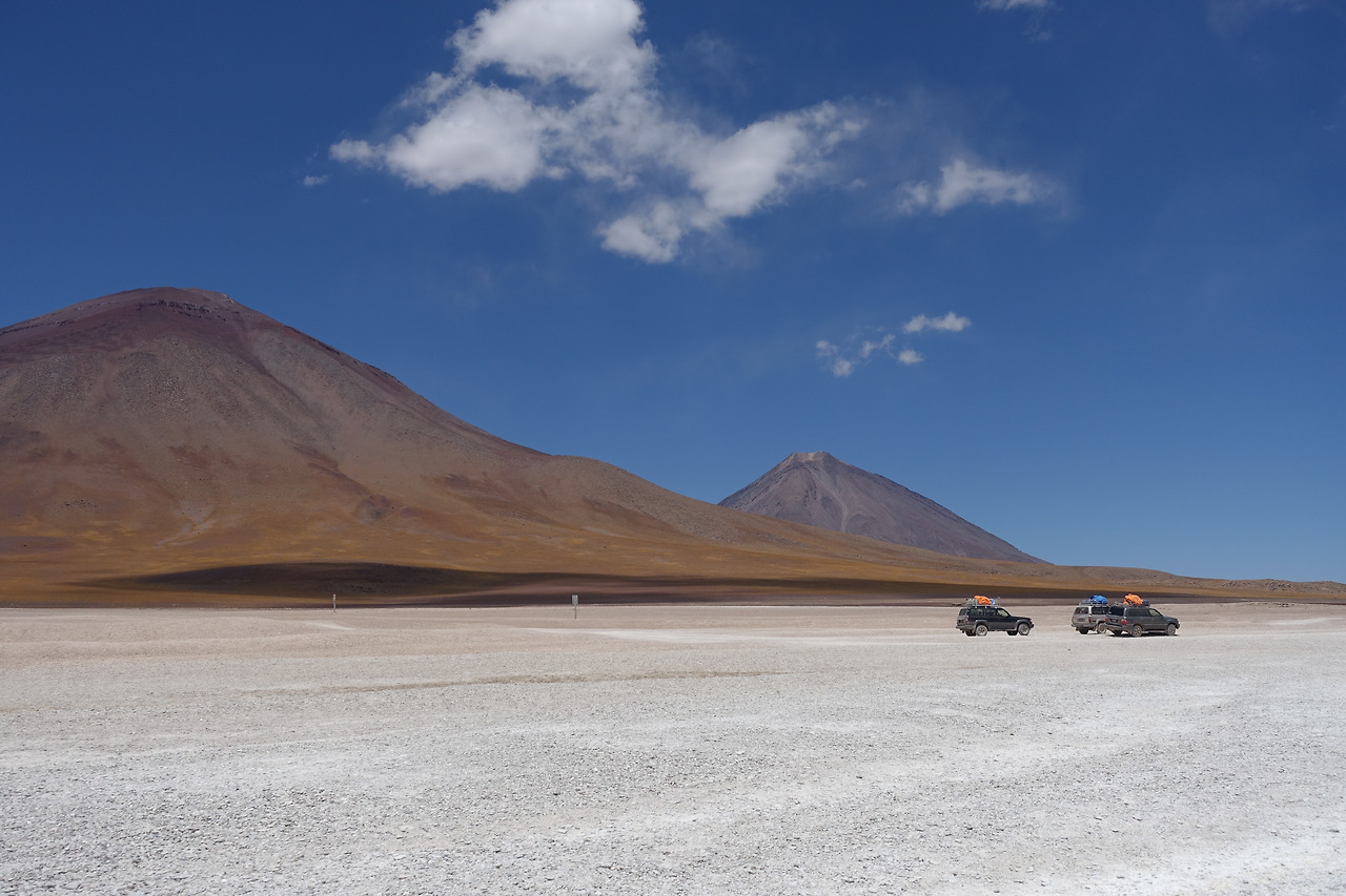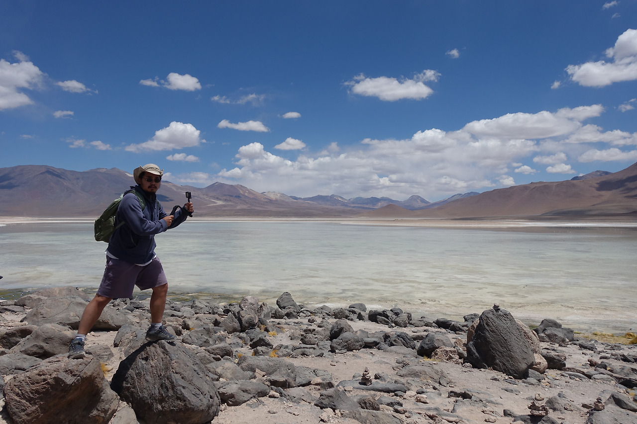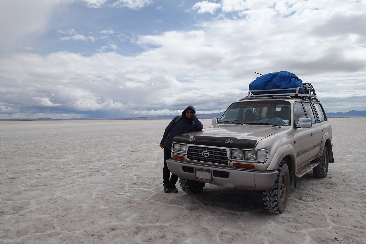 고산증 때문인 건지 모르겠지만, 이상하게도 물이 찬 우유니가 감탄스러울 정도로 좋진 않았다. 그냥 좀 허무했다. 사진을 한참 찍다가 소변이 마려웠다. 소금사막에 화장실이 어디 있겠나. 다른 여행객들이 없는 곳으로 멀리 걸어가서 방뇨했다. 육각형 블록 모양 바닥에 대고 쉬이이이이. 뜨뜻한, 한 때는 내 것이었던 소변을 방류하니 등골이 싸늘해졌다.