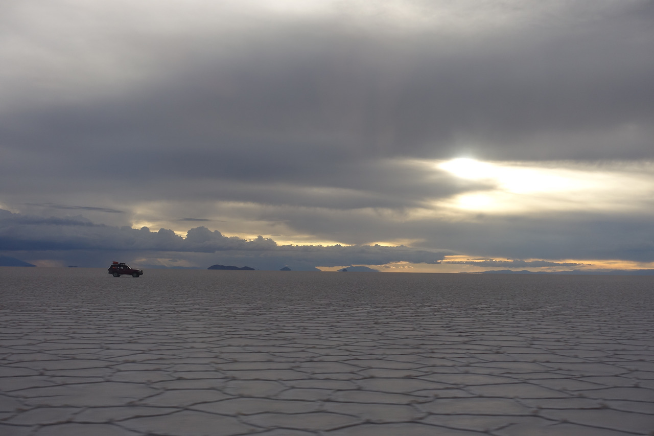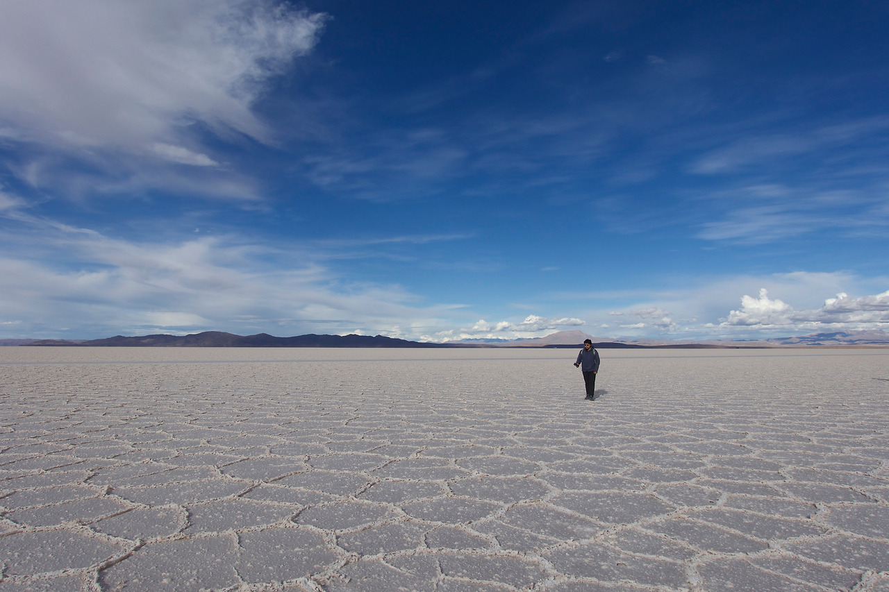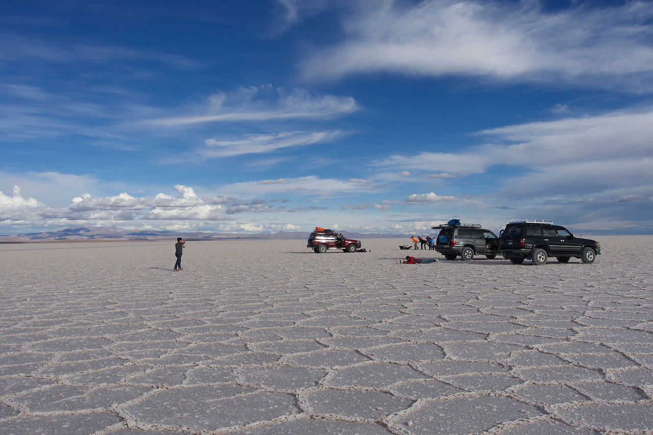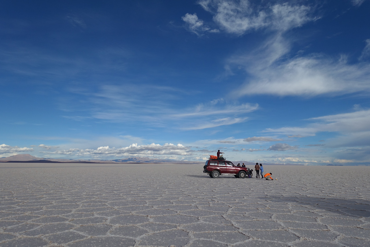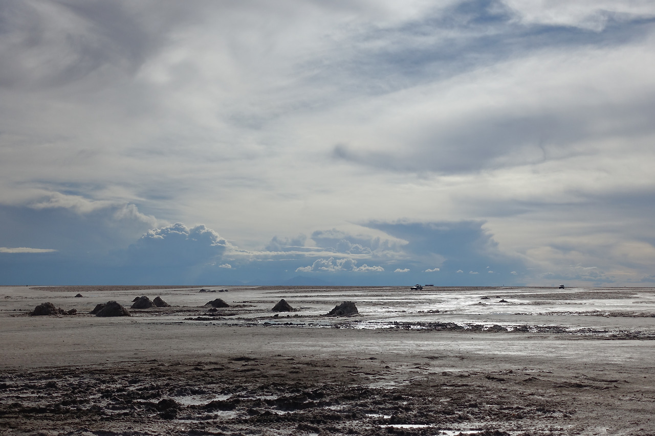 우유니 사막은 엄청 크다. 우기인 지역이 있고 아직 우기가 아닌 곳도 있다. 나는 개인적으로 하늘을 반영한 물이 찬 우유니의 모습보다 육각 모양의 블록이 벌집처럼 가득한 물 없는 우유니의 모습이 더 좋다.