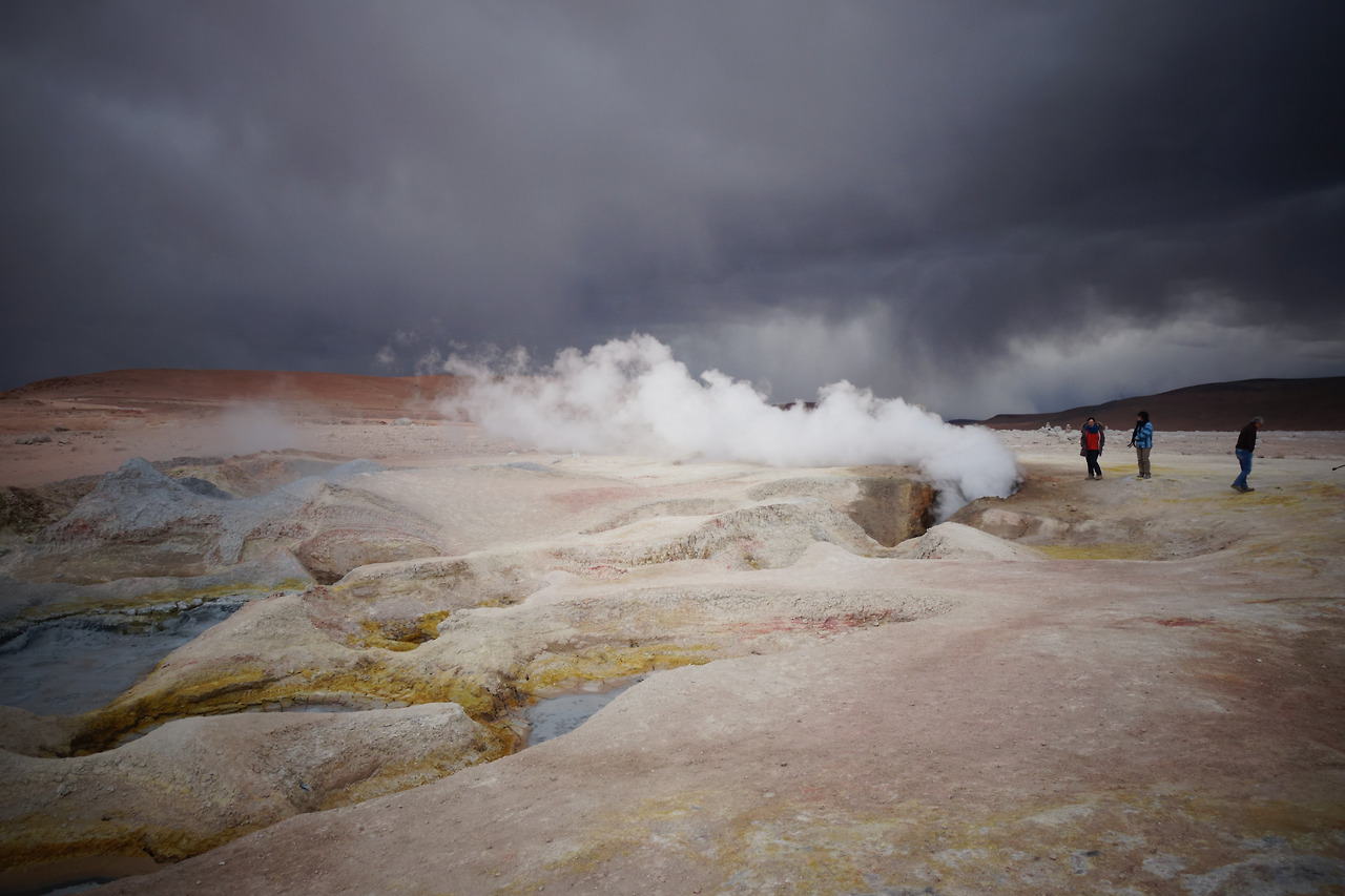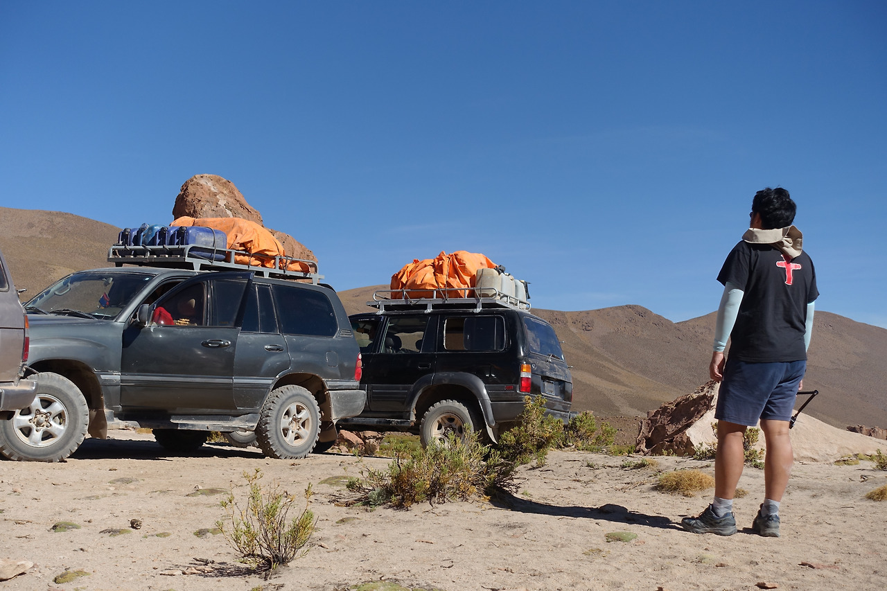 아따카마에서 운전기사를 섭외받고 자동차를 배정받는다. 다른 여행자들과 함께 지프차를 타고 4일 정도 우유니 소금 사막을 향해 간다. 우유니 사막은 해발 3500m - 4000m 사이에 위치한다. 나는 해발 3200m 정도부터 고산증을 앓는다. 3200m부터는 50m 단위로 올라갈수록 머리가 깨질 듯이 더 아파온다. 그러니 4000m 위치에서 출발한 우유니 여행에서 나는 극심한 두통을 앓았고 식음을 전폐했다. 거의 뭐 시체처럼 차에 널브러져 실려 다녔다. 고산증세를 낮춰주는 코카잎을 잘근잘근 씹으며 버텼다. 턱이 아플 정도로 많은 코카잎을 씹어댔다. 내가 4일 동안 무엇을 봤는지 어디서 잤는지 뭘 했는지 기억이 잘 나지 않을 정도로 고산증이 심했다. 사진을 보고서야 어디에 있었는지 복기할 수 있었다...